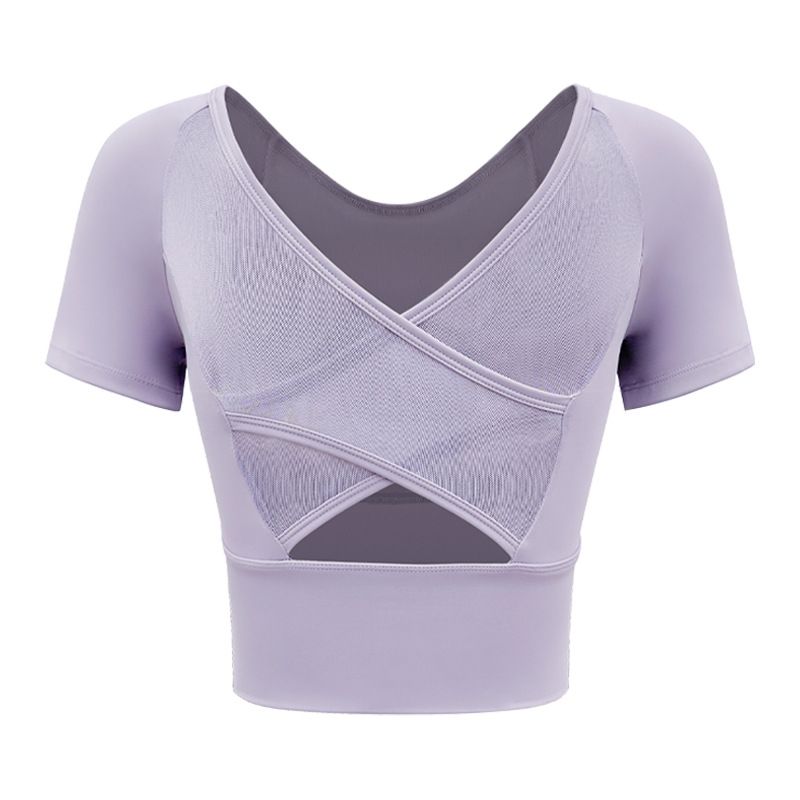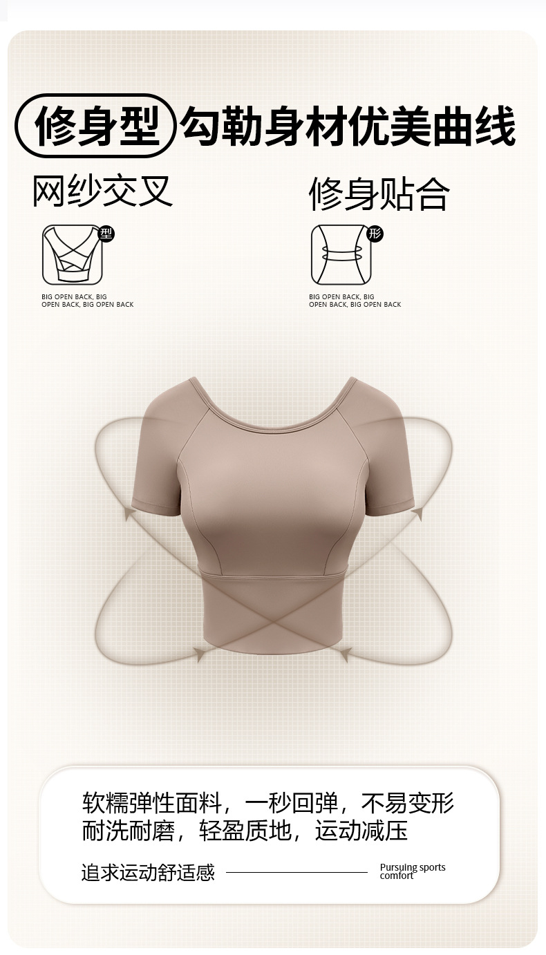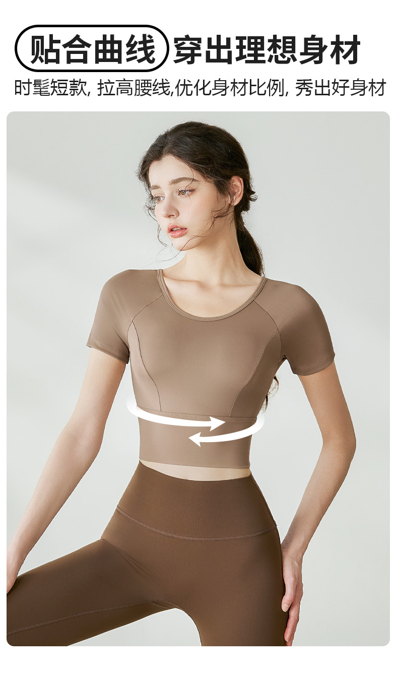 Женская одежда для йоги 2026: летний спортивный топ для пилатеса с коротким рукавом, со встроенными чашечками, для занятий спортом на открытом воздухе