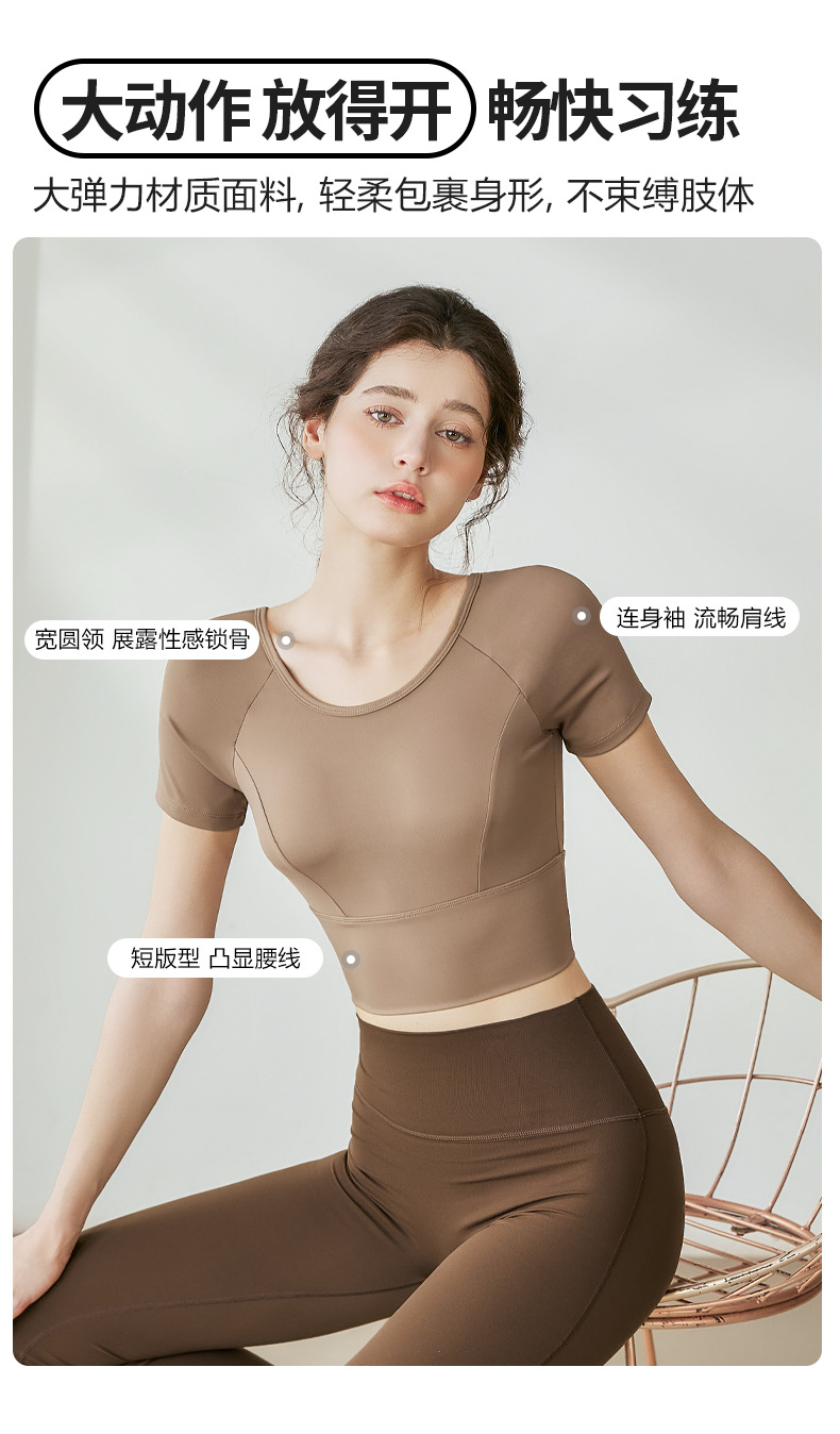 Короткие рукава цвета лотоса.; Каштановые короткие рукава; Темно-фиолетово-серые короткие рукава; черные короткие рукава; [Одежда для фитнеса] Короткие рукава цвета лотоса + серые брюки с каплями воды.