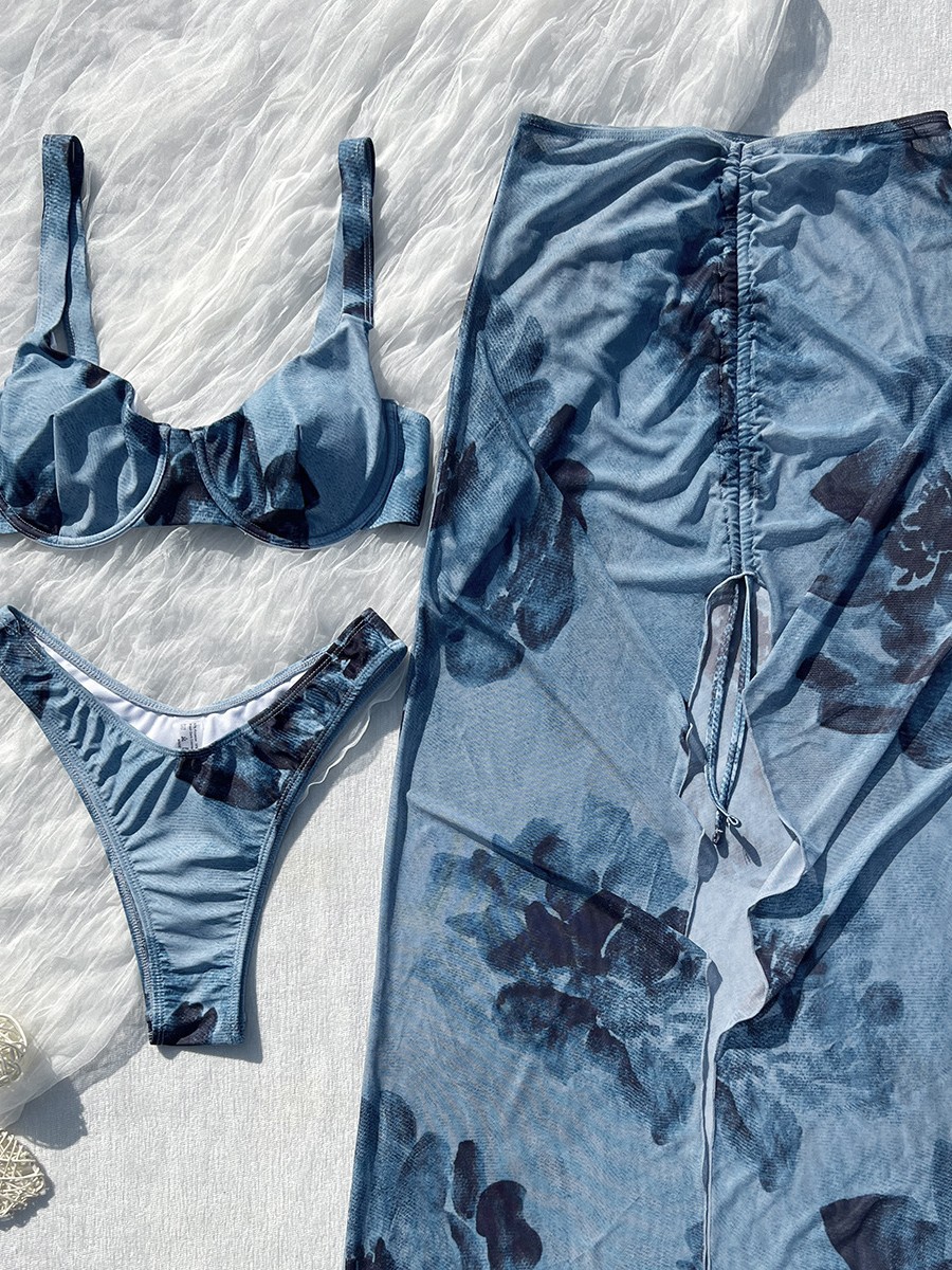 2025 новый AliExpress европейский и американский женский купальник с принтом пионов, трехсекционный купальник-бикини bikini039