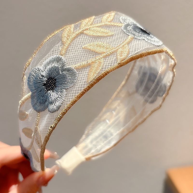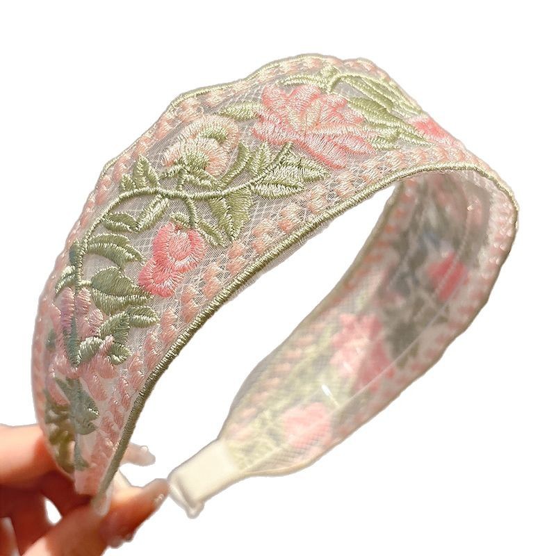 Новая кружевная повязка на голову в китайском стиле с вышивкой роз, этнический нишевый дизайн, повязка на голову с широкими полями, универсальный головной убор с высокой короной