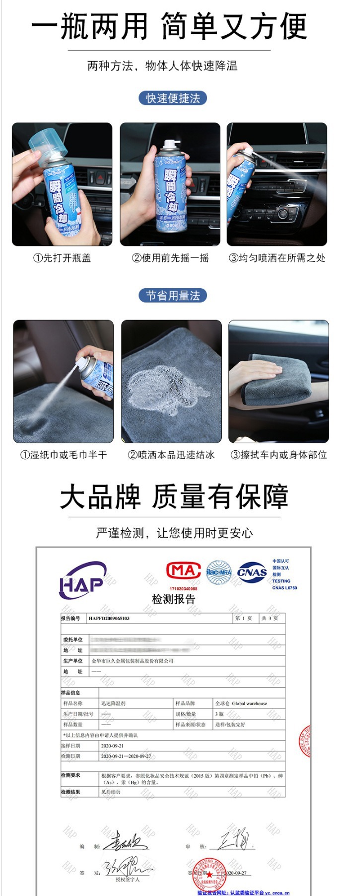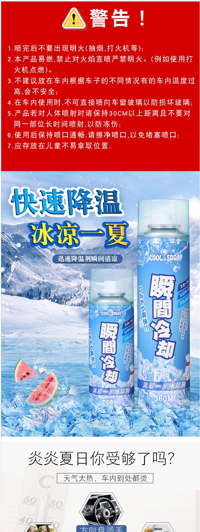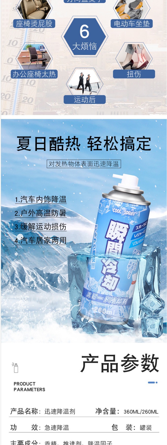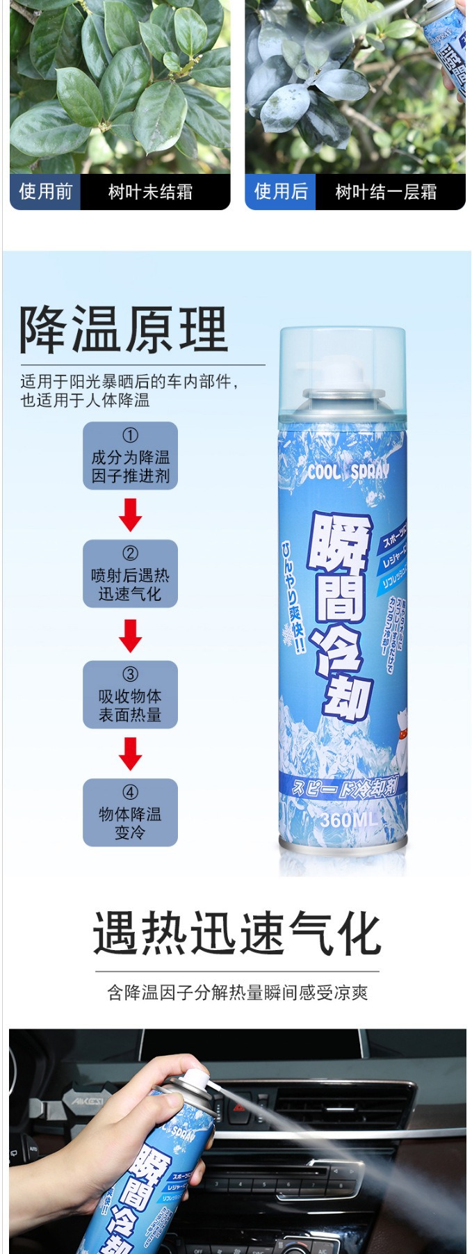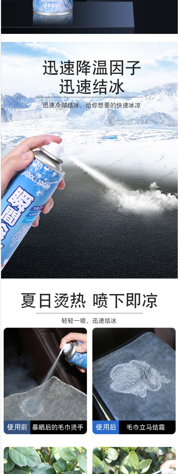 Подходит для летнего автомобильного воздушного охлаждения, спрей для мобильного телефона, мгновенное охлаждение, спортивное охлаждение, портативное быстрое охлаждение, сухой лед