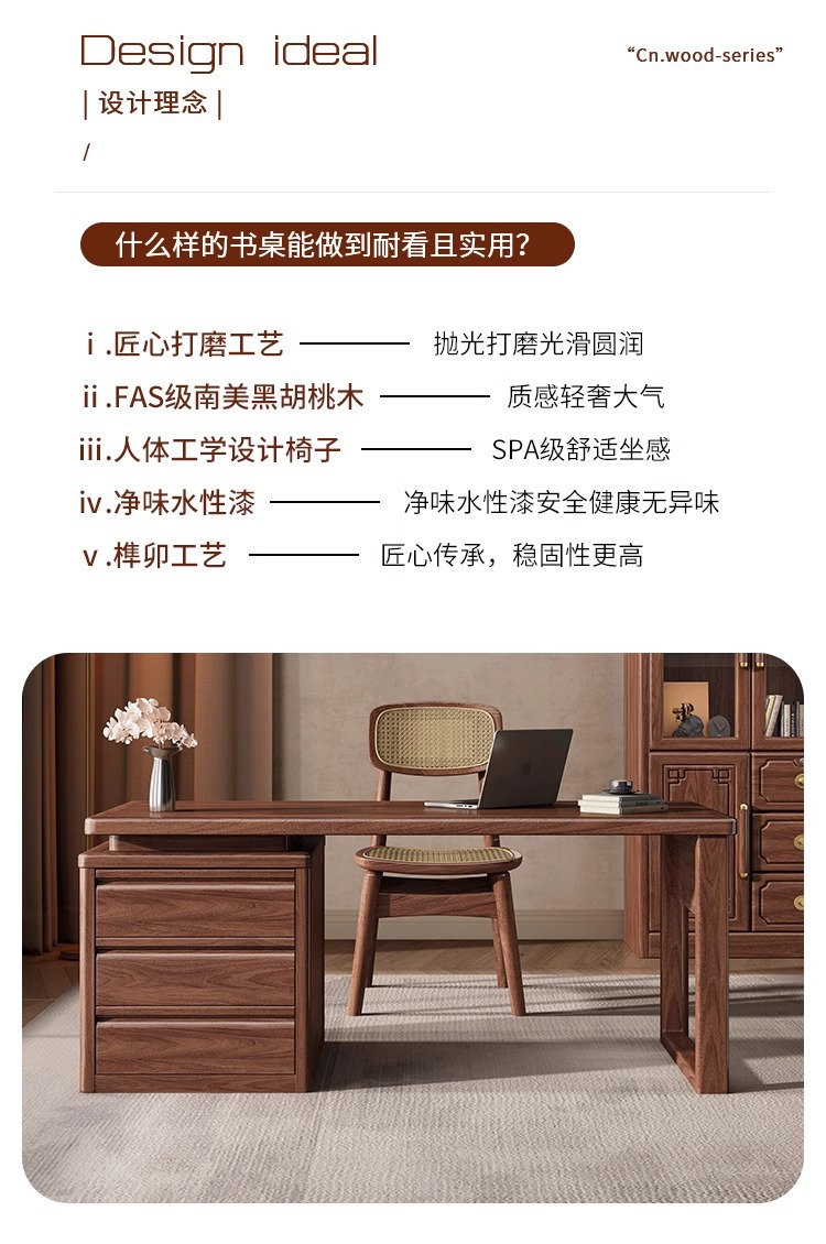 Письменный стол и стул из массива черного ореха, современный легкий роскошный письменный стол для каллиграфии, офисный письменный стол, кабинет, домашний простой