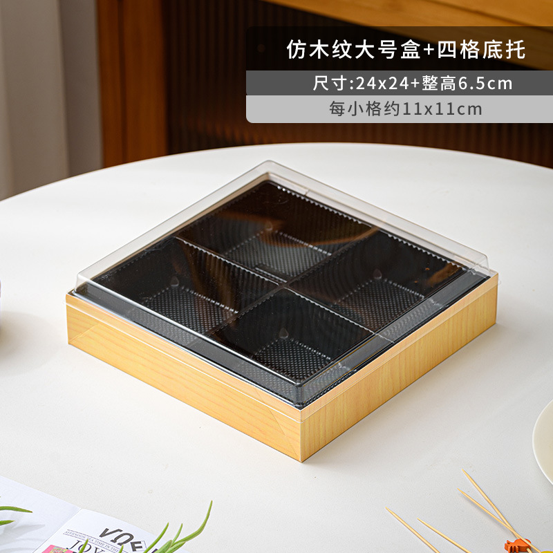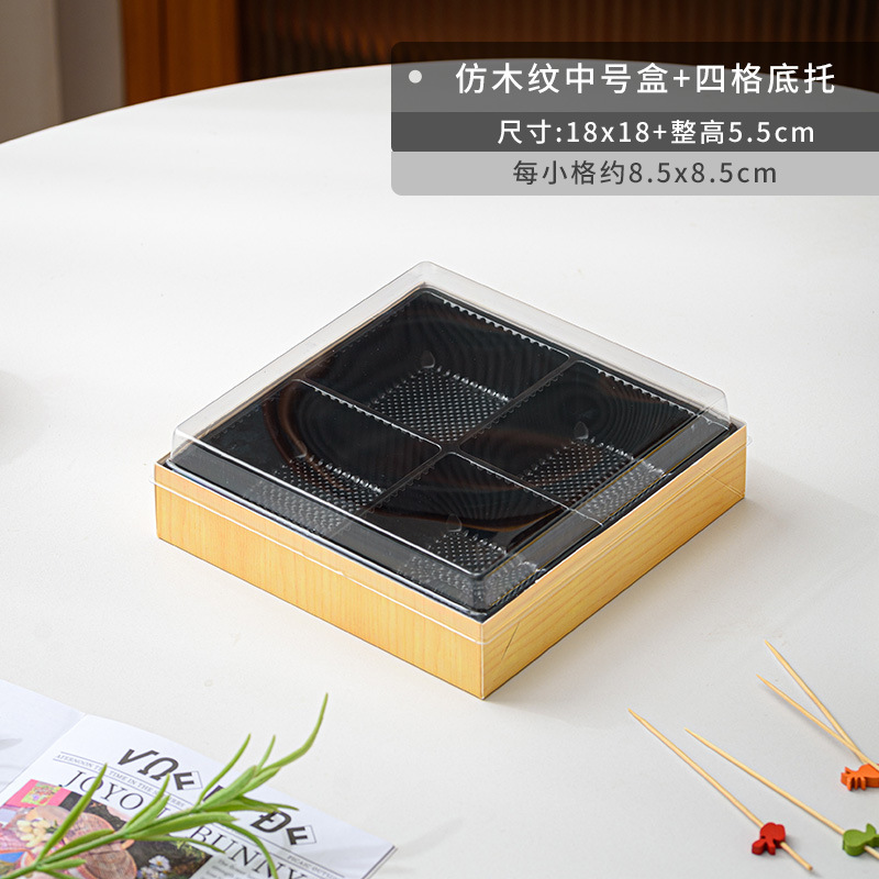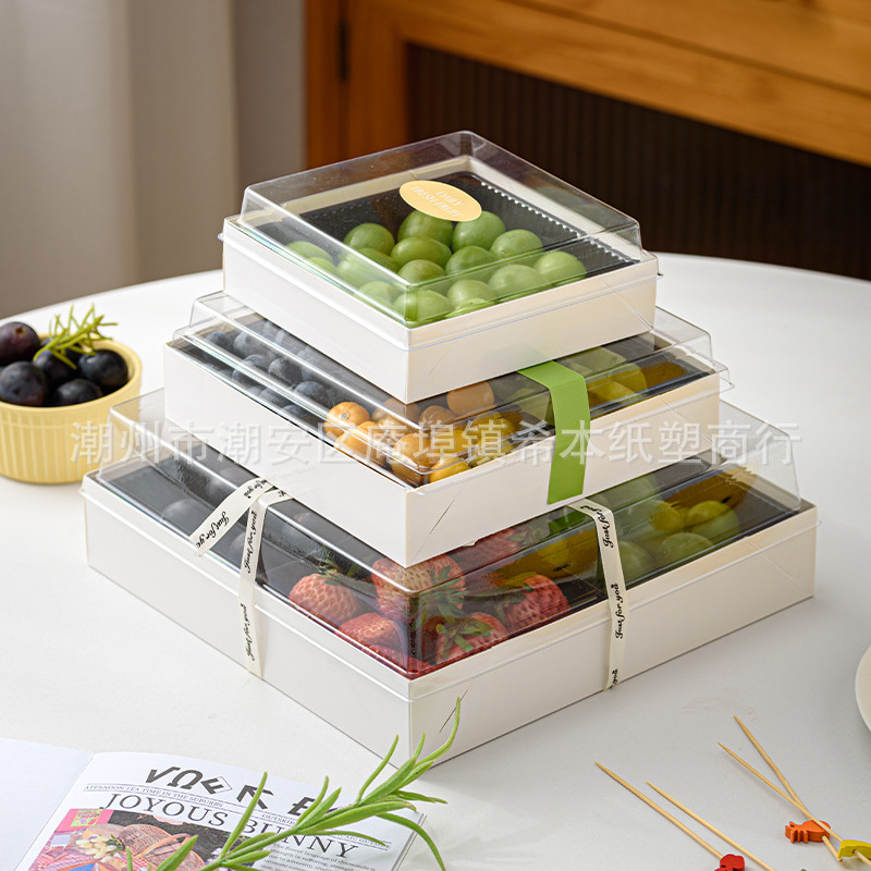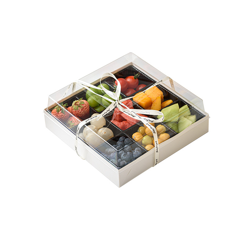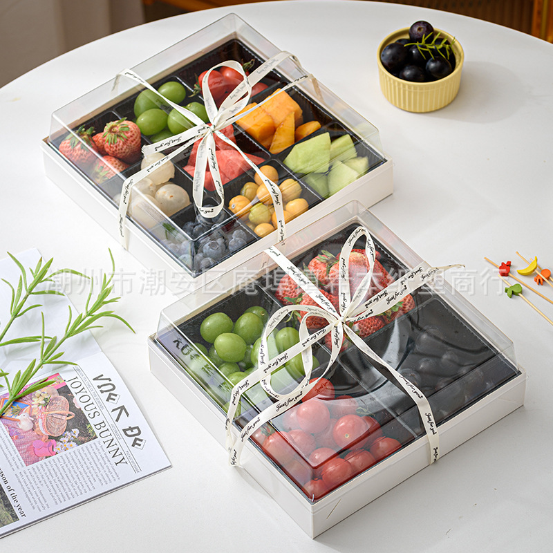 Фруктовая коробка из четырех частей, упаковочная коробка для нарезки свежих фруктов, четырехугольная тарелка для фруктов, одноразовая бумажно-пластиковая упаковочная коробка с крышкой