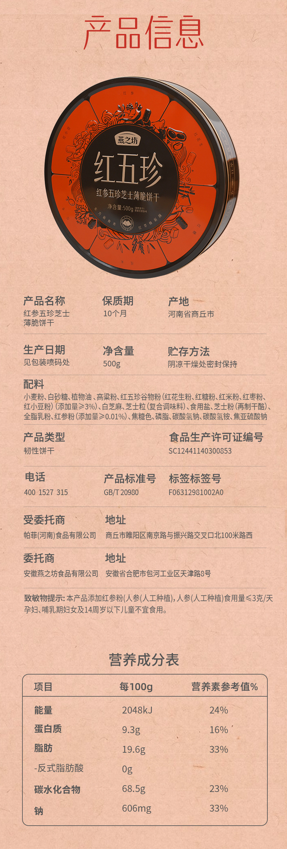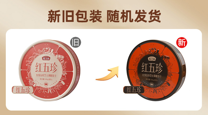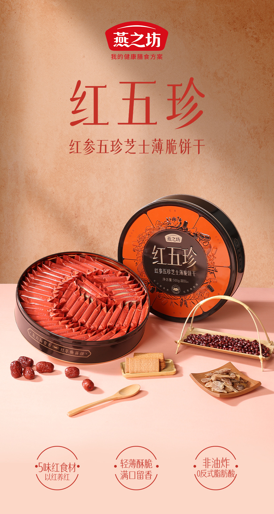 Yanzhifang Красный женьшень Пять сокровищ Сырные крекеры Железная коробка 500 г Повседневная индивидуальная упаковка Подарочная коробка для группового покупания