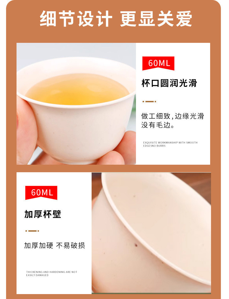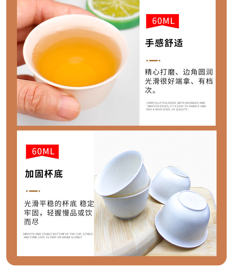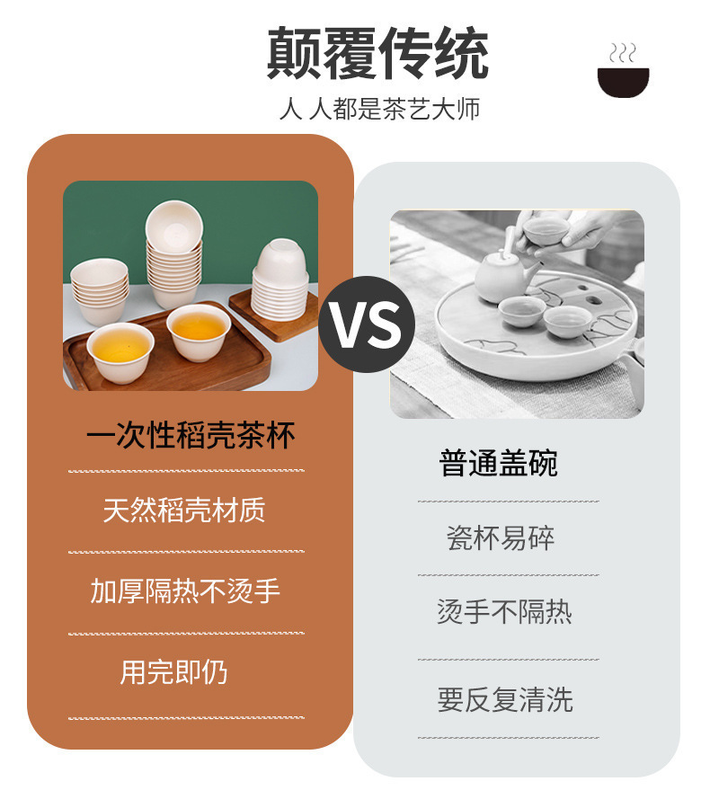 Одноразовая чашка из рисовой шелухи, чашка для чая кунг-фу, небольшой чайный набор для путешествий на открытом воздухе, офисный домашний утолщенный чайный чашка