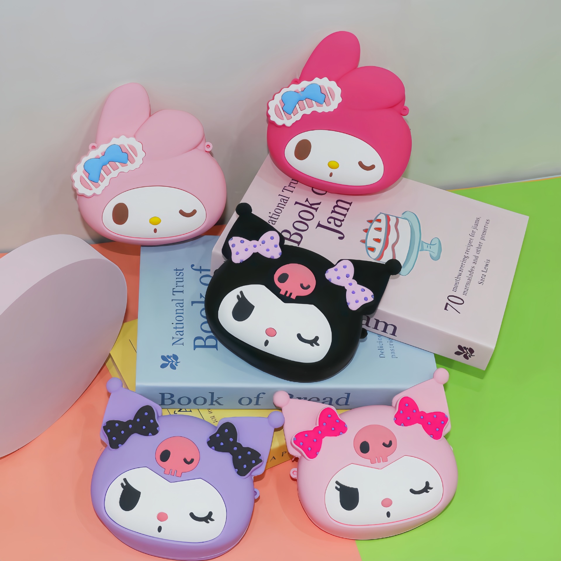 Детский силиконовый кошелек для монет с героями мультфильмов, креативная модная сумка через плечо Kuromi, милая сумка для хранения наушников для девочек