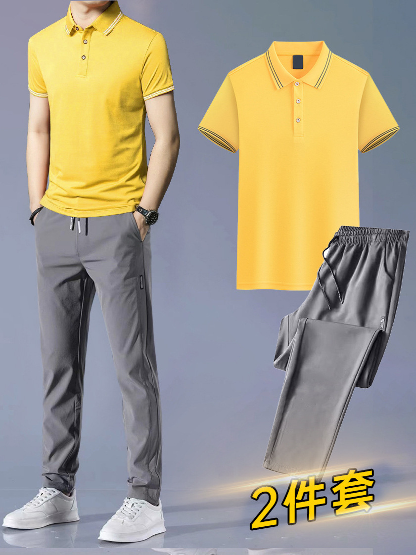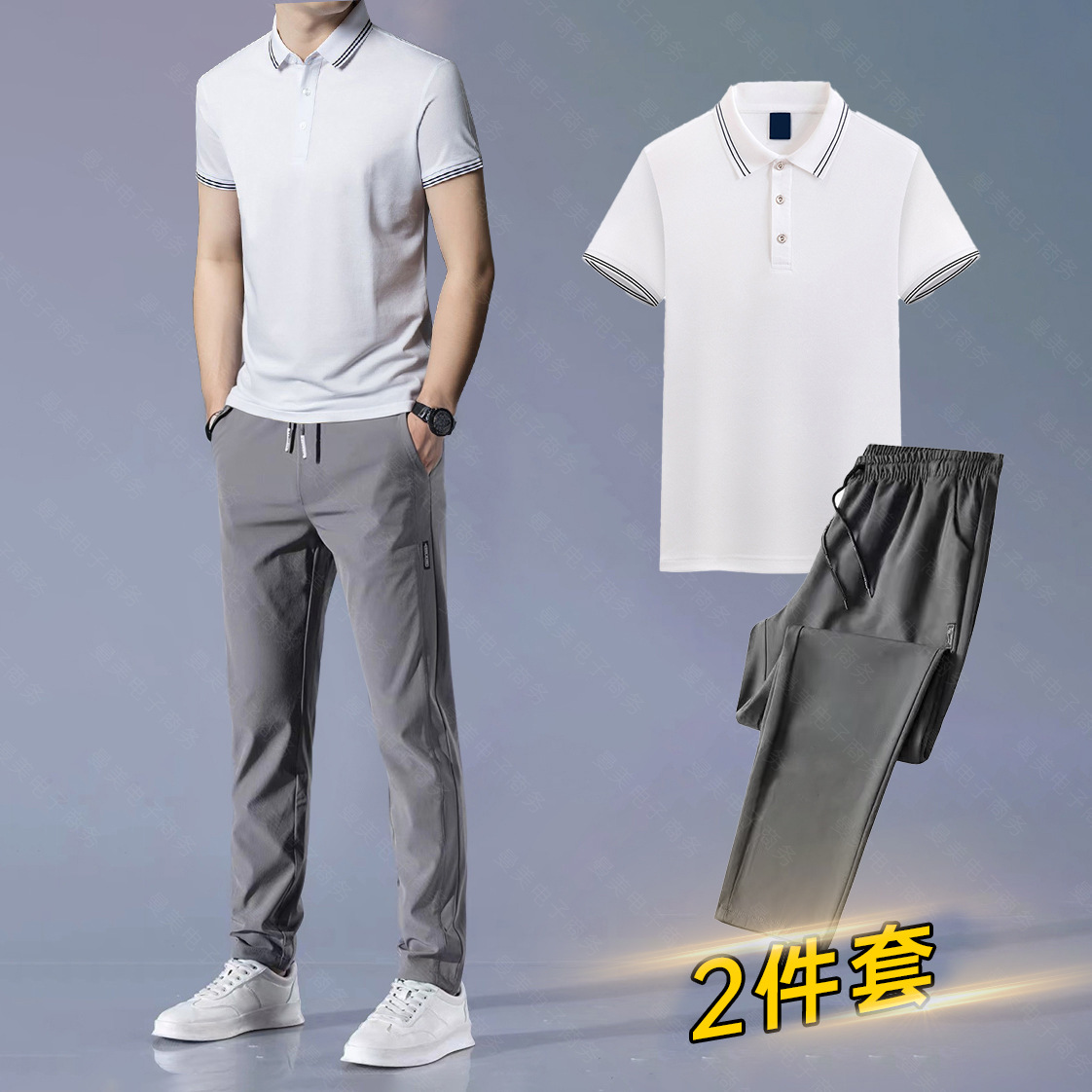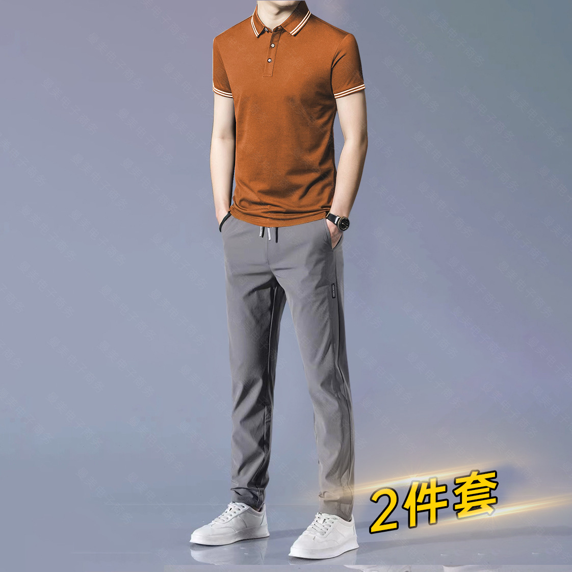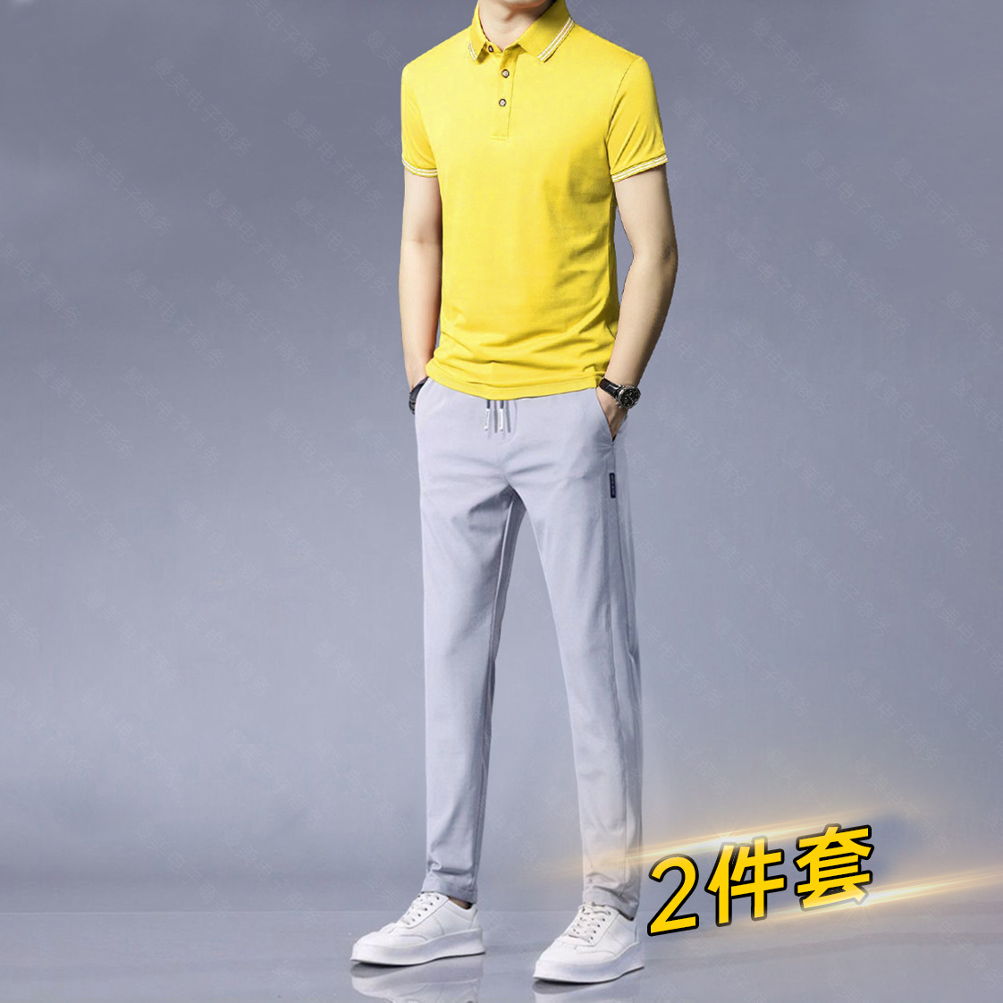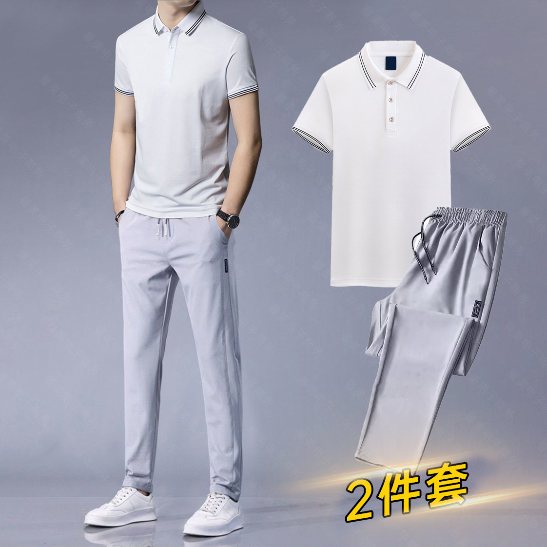 Летняя рубашка-поло из ледяного шелка с короткими рукавами, повседневный костюм, мужские тонкие красивые свободные спортивные шорты, комплект из двух предметов