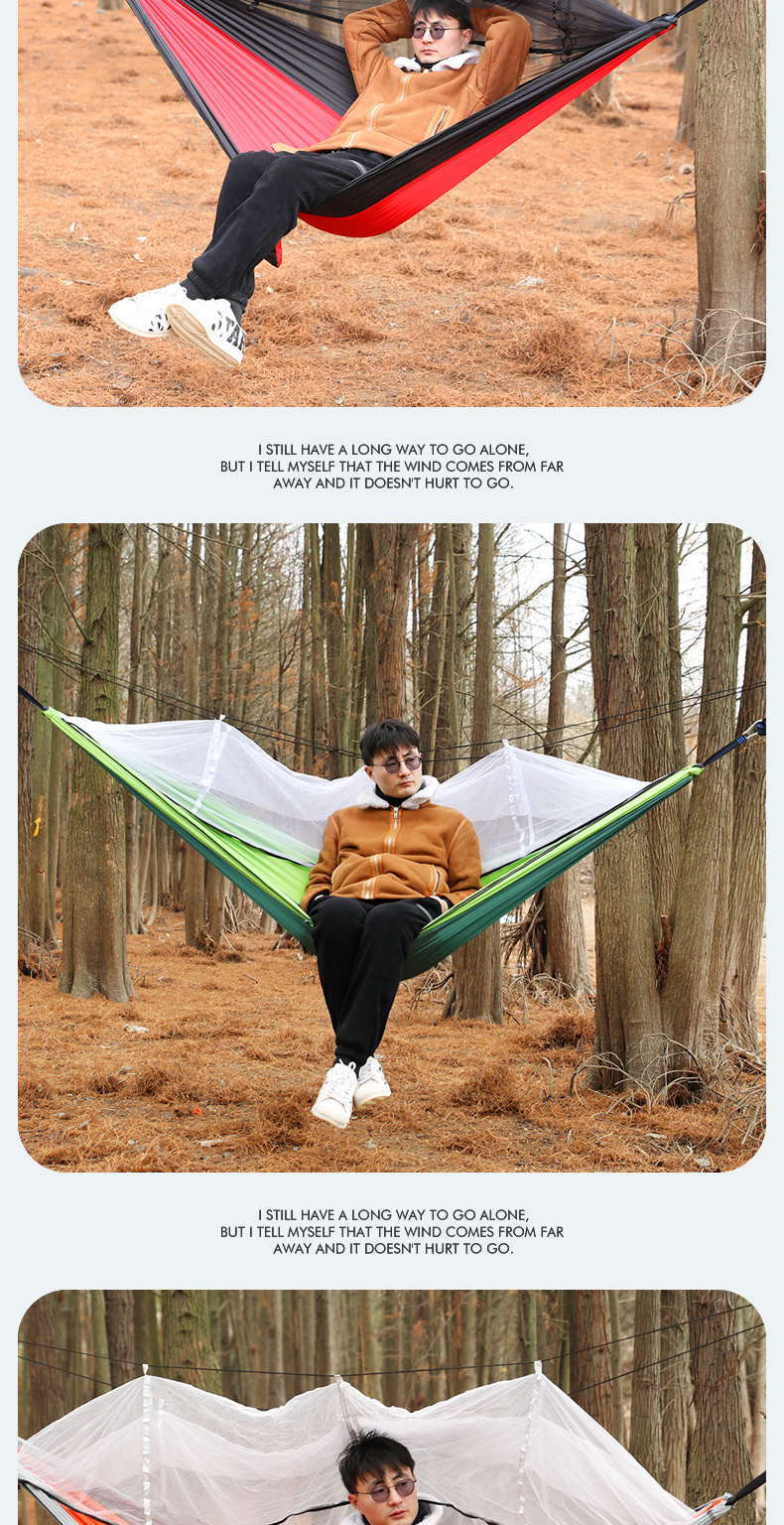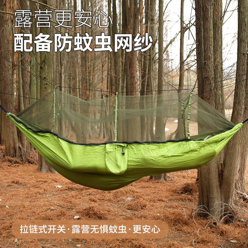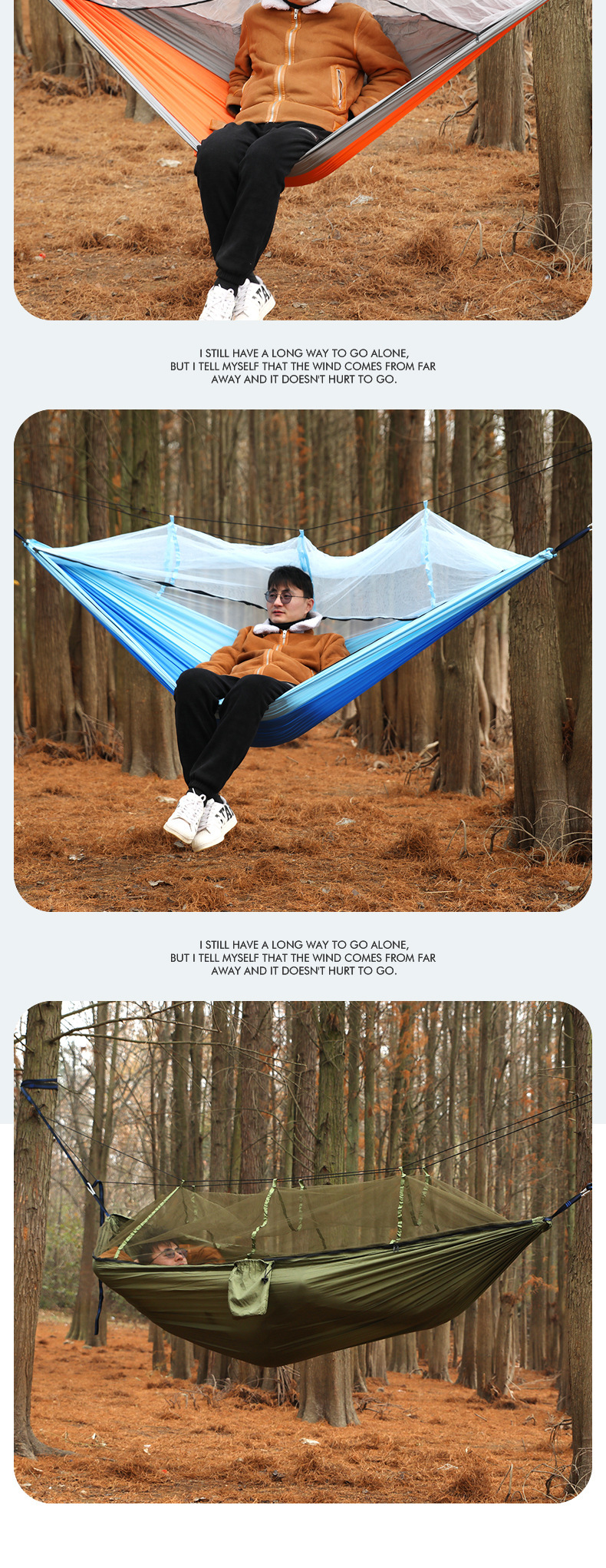 品名:蚊帐吊床 面料:210T起皱尼丝纺(俗称降落伞布)+涤纶网纱