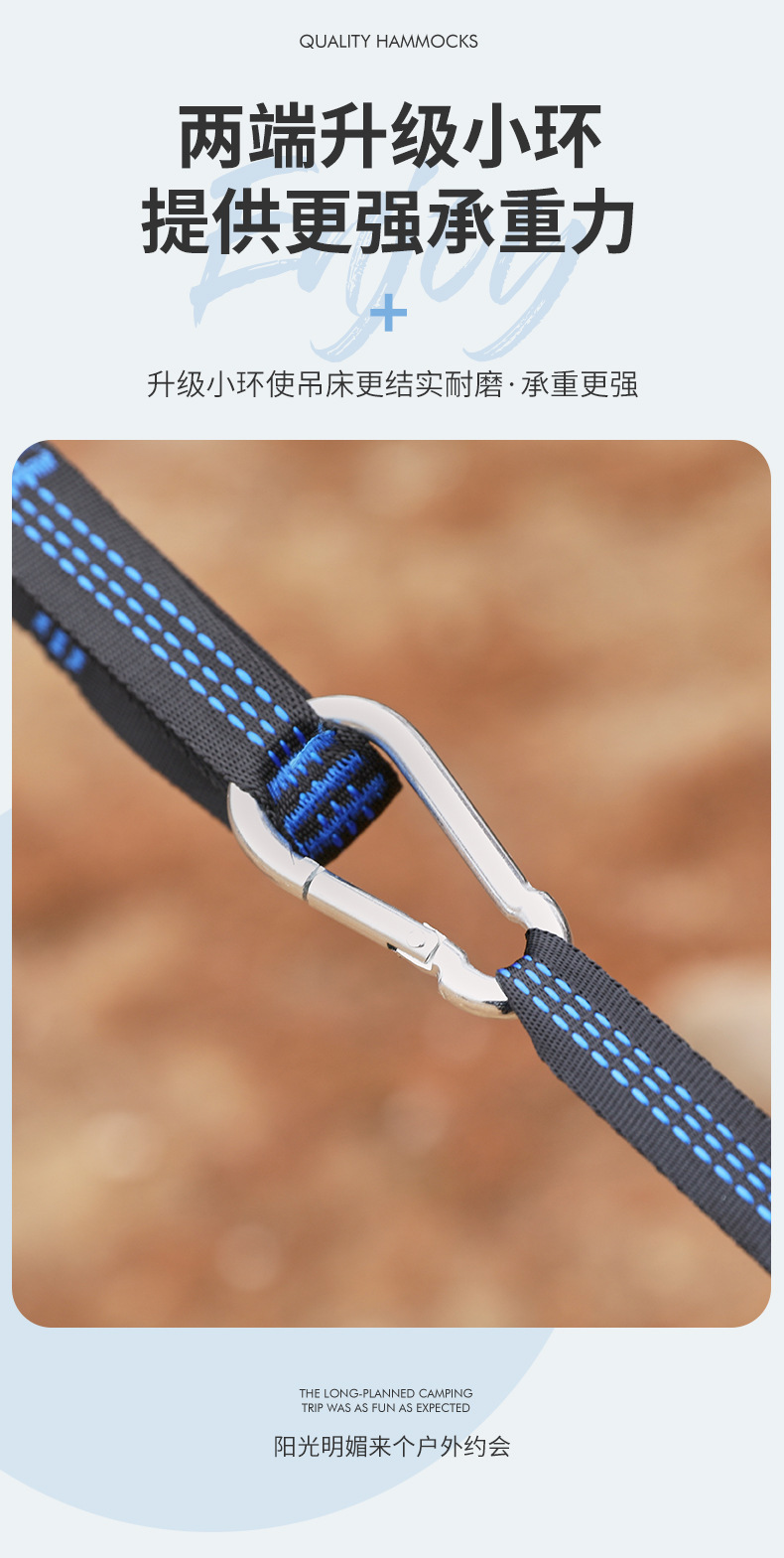 配件:8cm银色铁扣*2,两米高强丙纶织带*2,3.6米蚊帐拉绳*2,连体收纳袋*1
