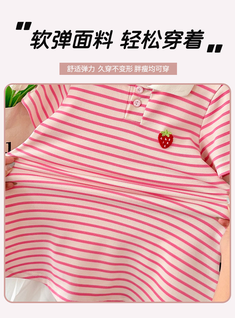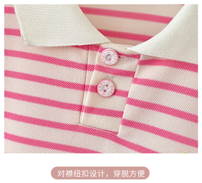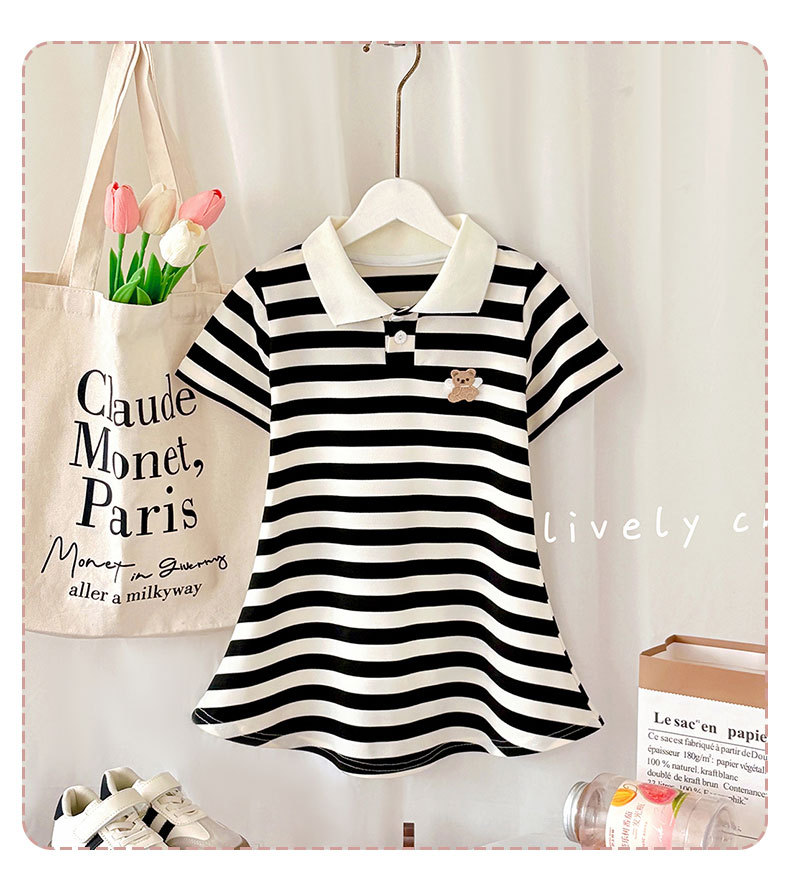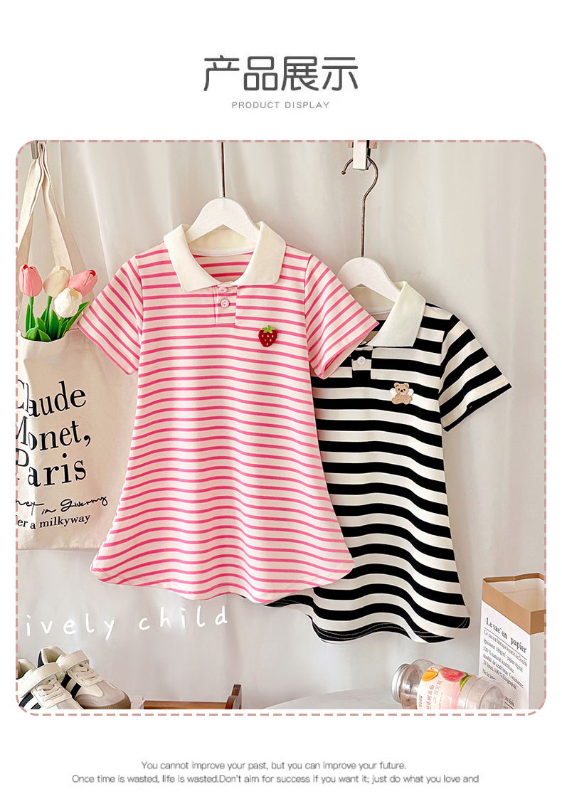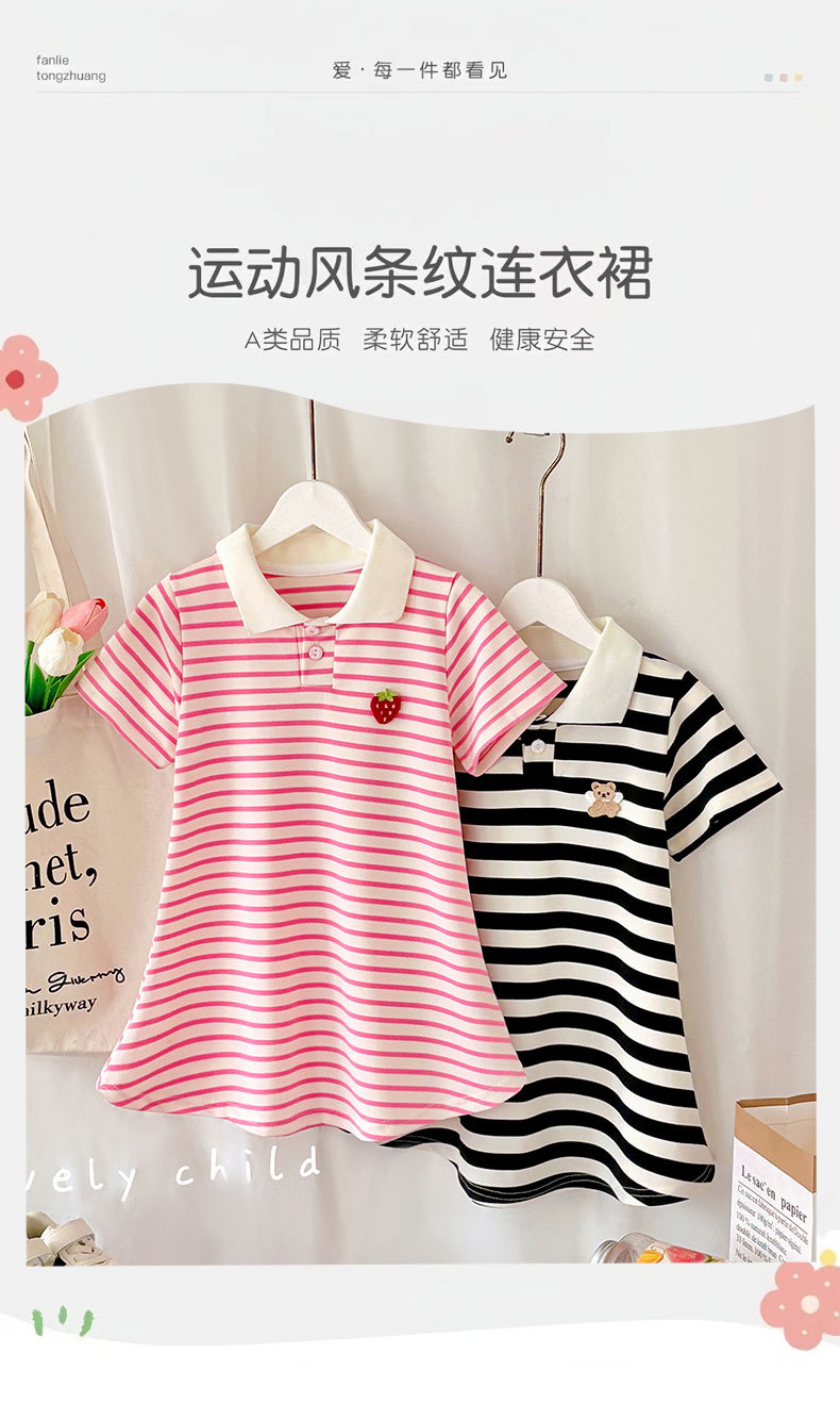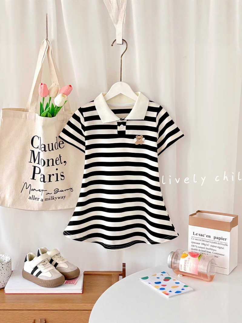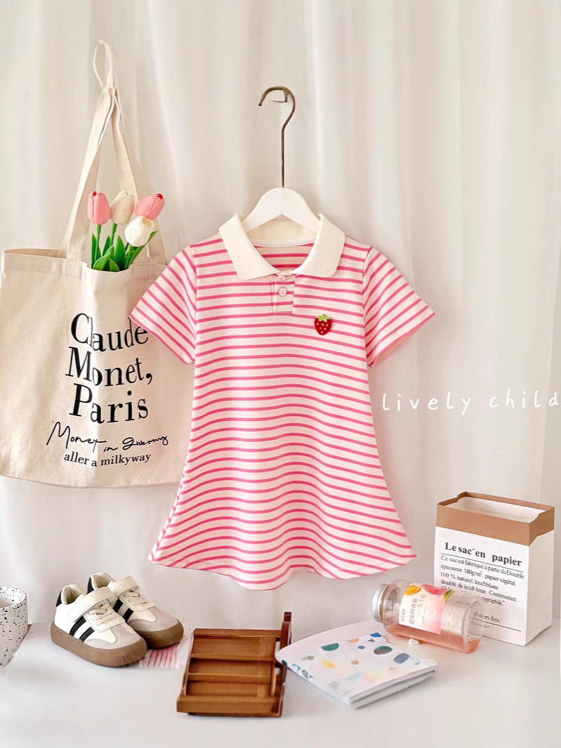 Летняя юбка с короткими рукавами для девочек, детская полосатая юбка принцессы в студенческом стиле, летняя юбка с воротником и половиной рукавов для девочек