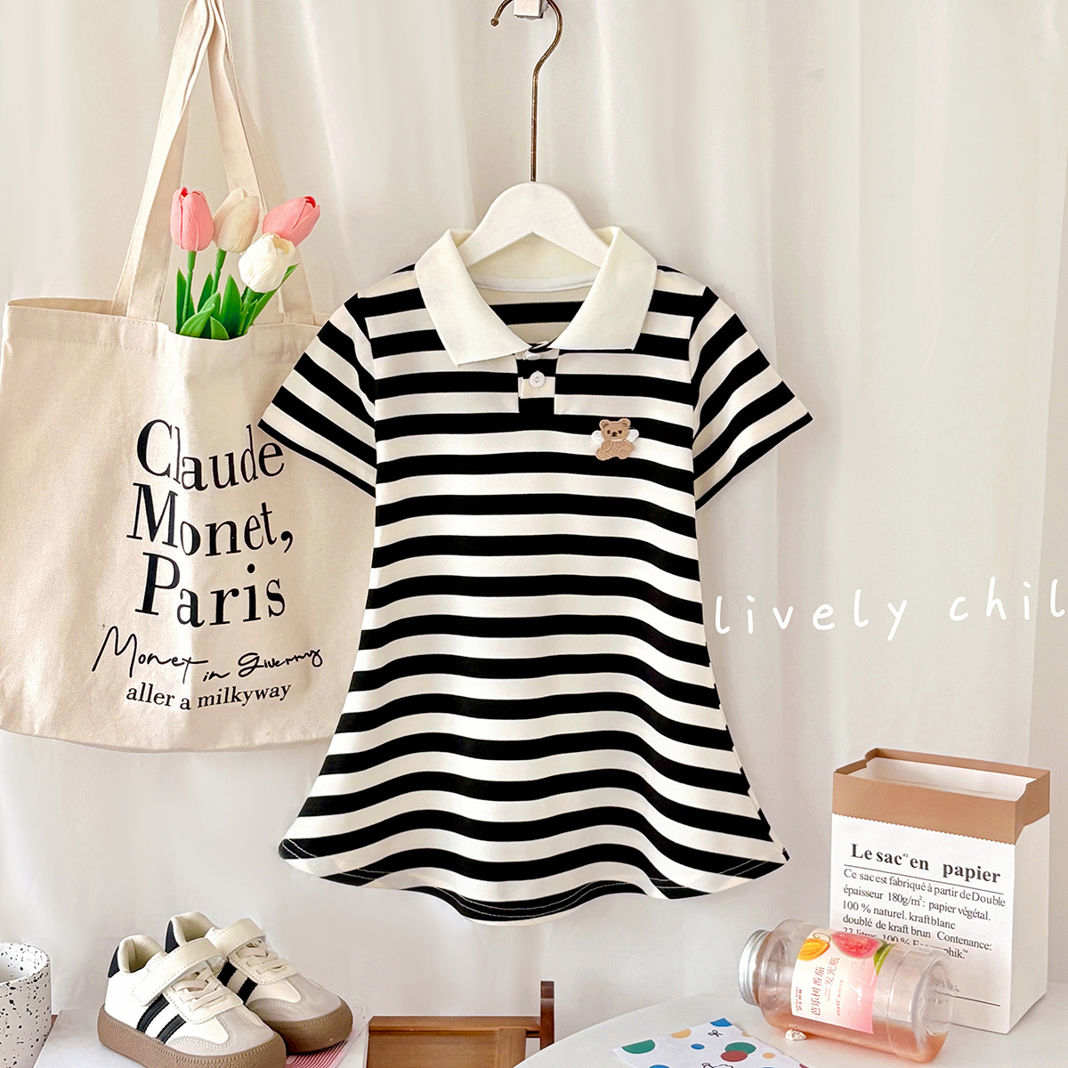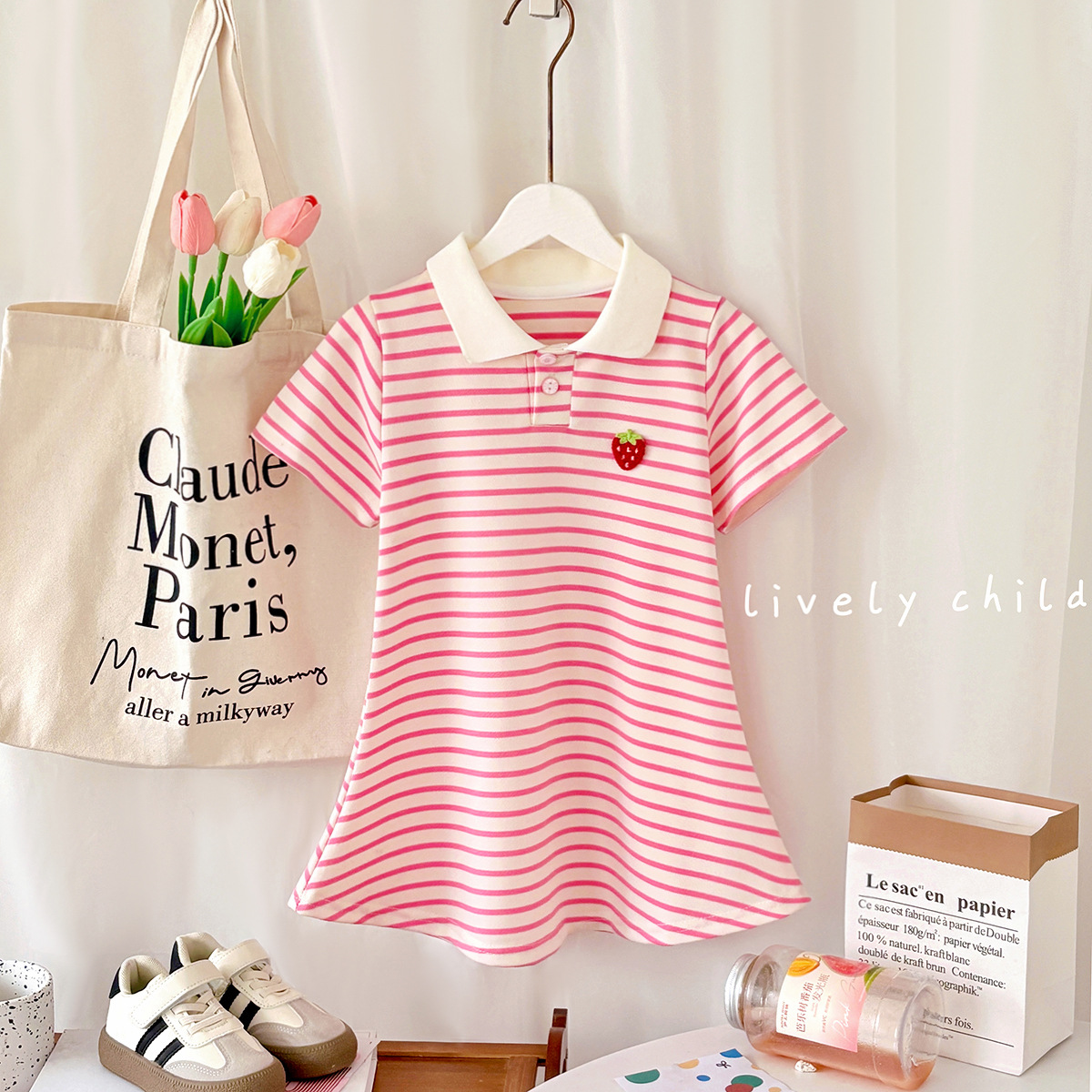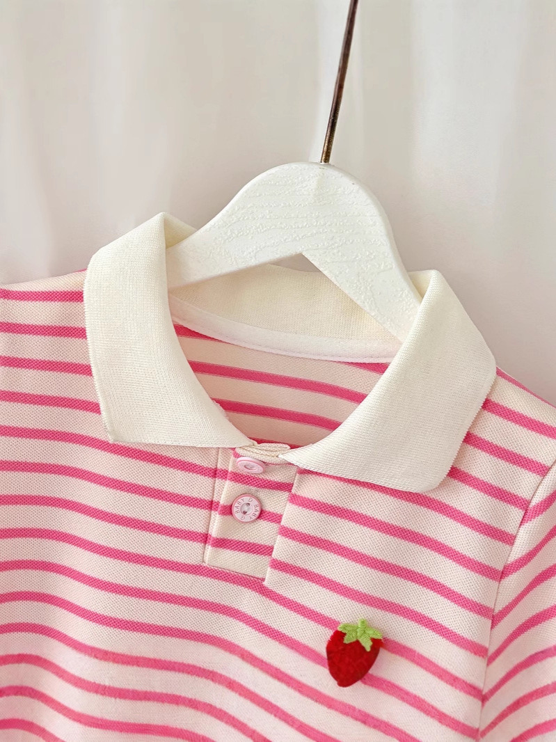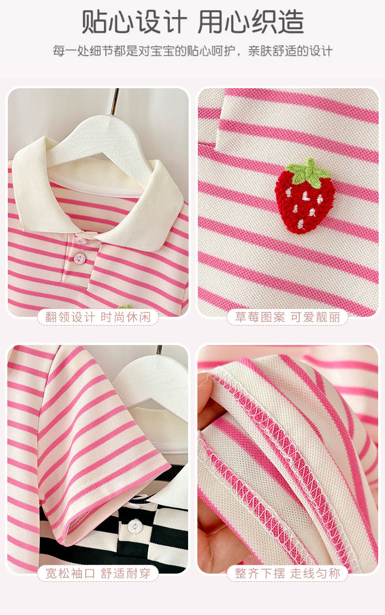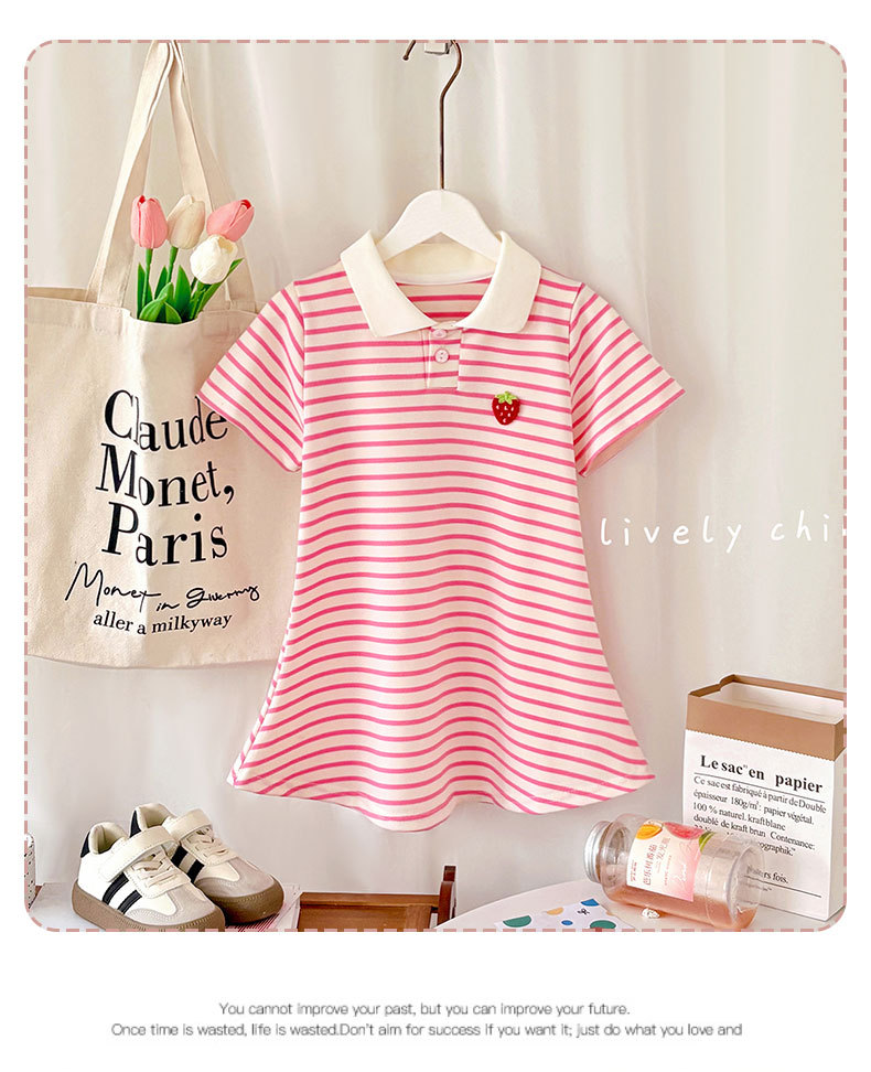 Летняя юбка с короткими рукавами для девочек, детская полосатая юбка принцессы в студенческом стиле, летняя юбка с воротником и половиной рукавов для девочек