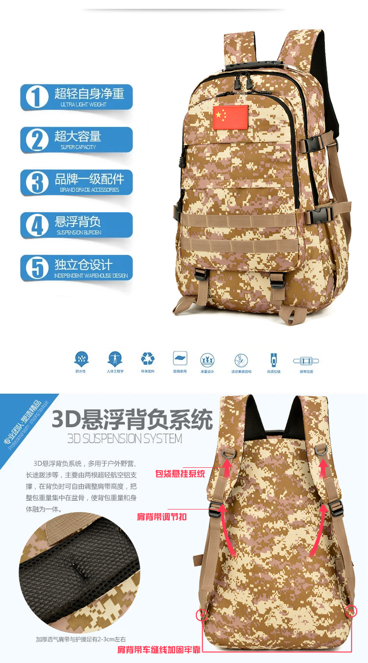 Тактический рюкзак, сумка для альпинизма на открытом воздухе, большая вместимость, многофункциональный спортивный камуфляжный рюкзак для военных фанатов, модный дорожный рюкзак