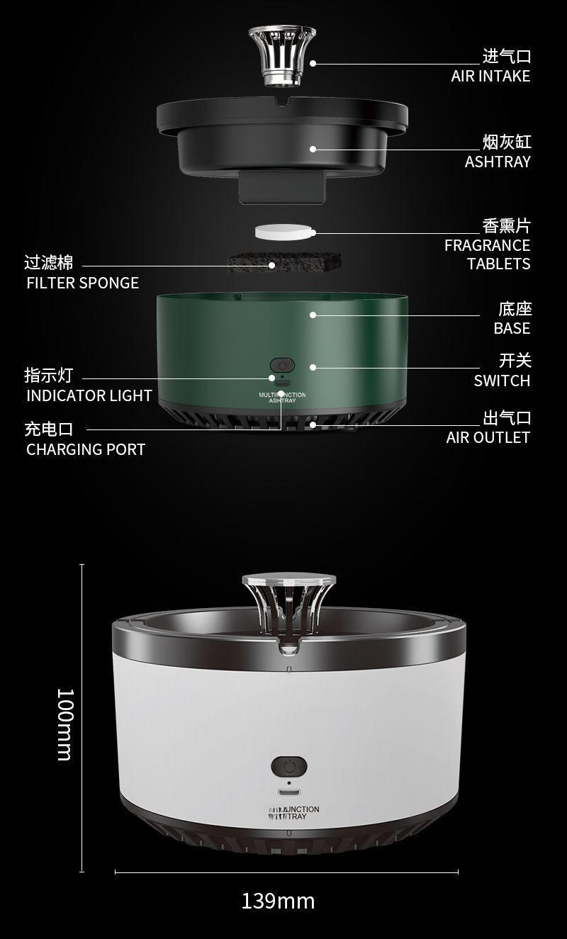 Одно нажатие, чтобы запустить полностью автоматическую промывку с вращением/мощное поглощение золы.; Флагманская модель: курение за одну секунду/антибактериальная и дезодорирующая с ароматерапией.; Эксклюзивная версия, высокая мощность, мощная и быстрая дезодорация.; Верхняя версия, автономная, социальная модель