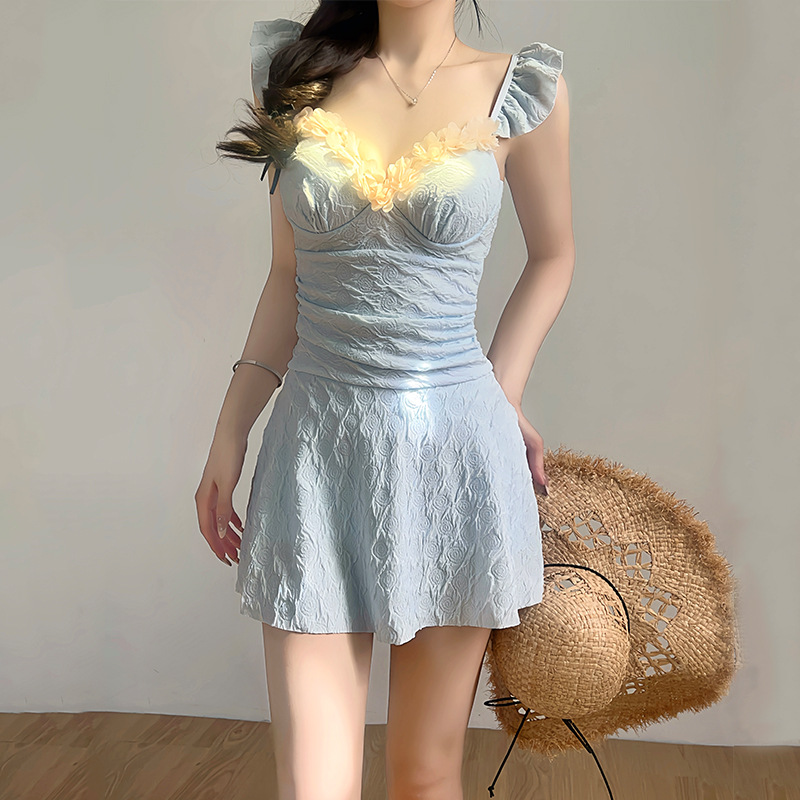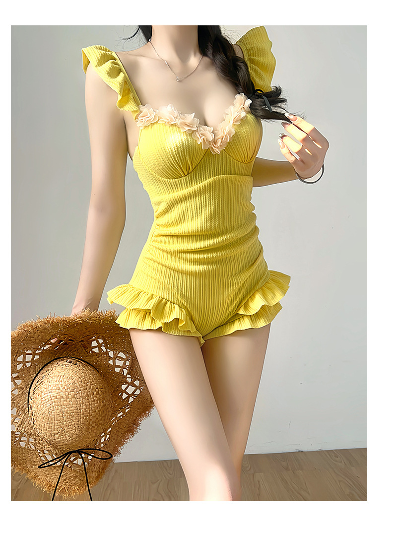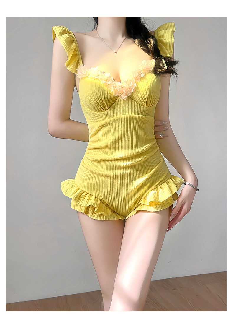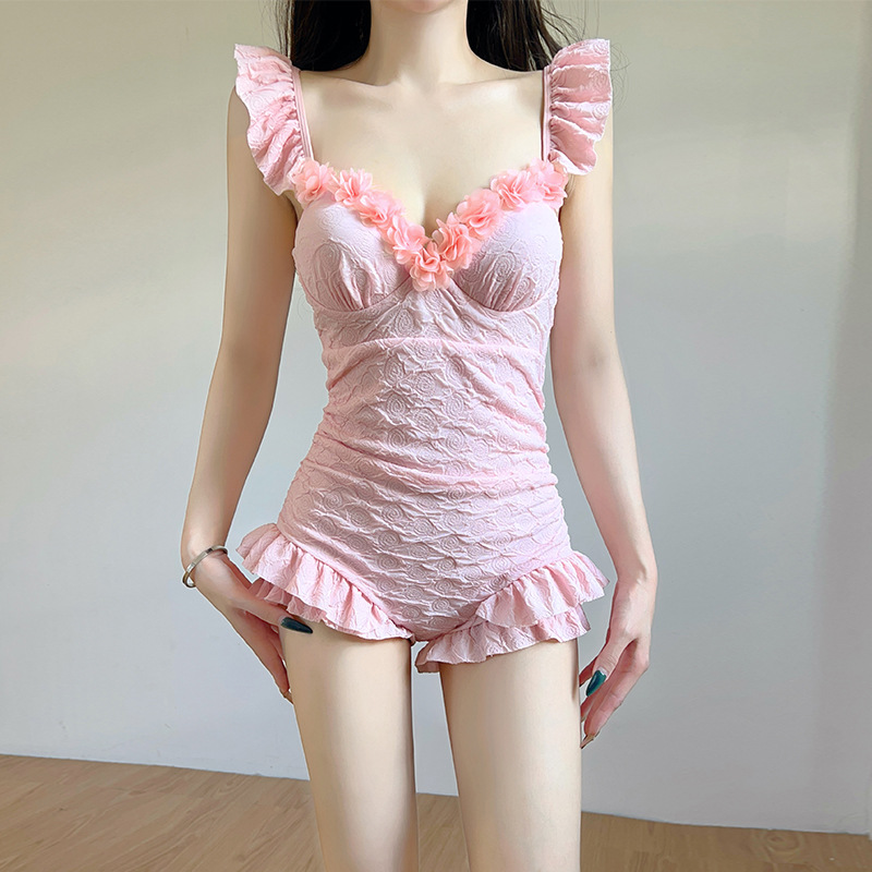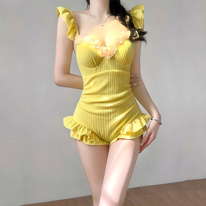 Женский купальник цельный на бретелях однотонный милый стройнящий сексуальный стиль чистой страсти для отпуска горячий источник оптом