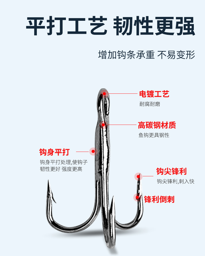 Тройной крючок из высокоуглеродистой стали, курсив.
