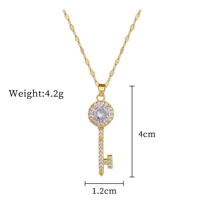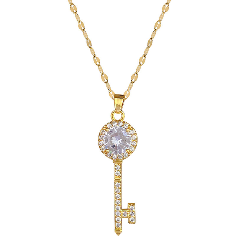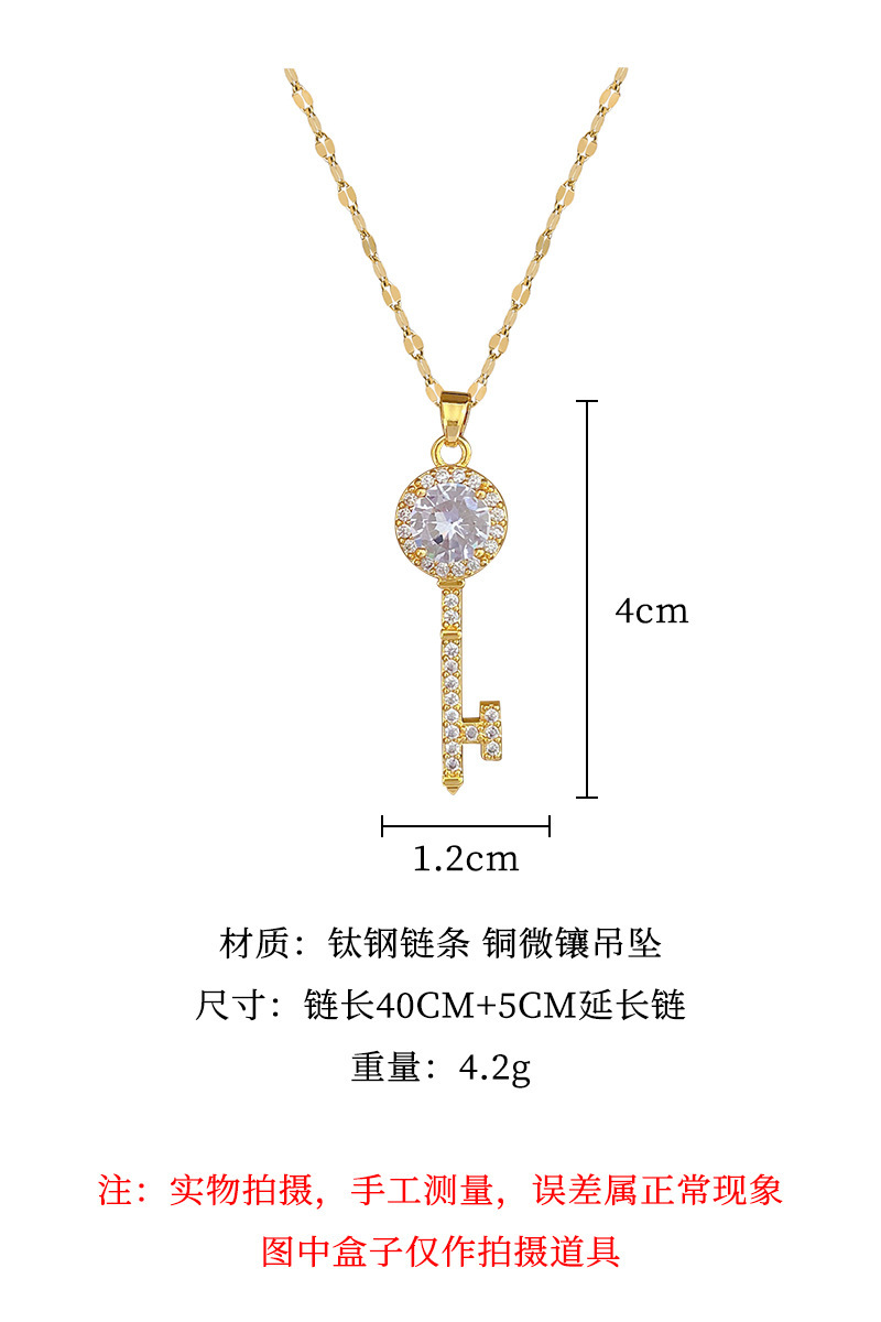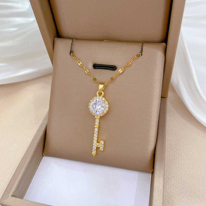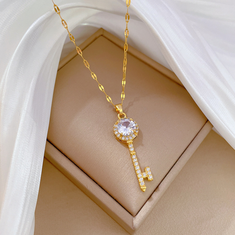 [Титановая сталь] Цирконовый ключевой свет Роскошное великолепное ожерелье с бриллиантами Женское интернет-знаменитость Легко подобрать цепочку на ключицу Цепочка из титановой стали