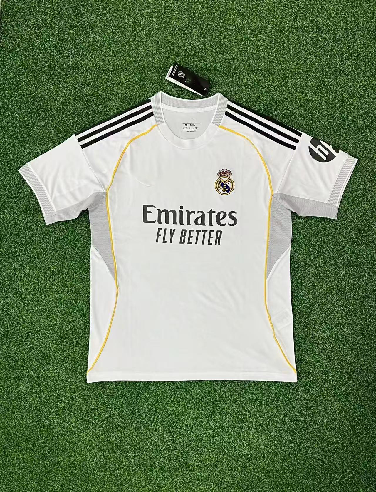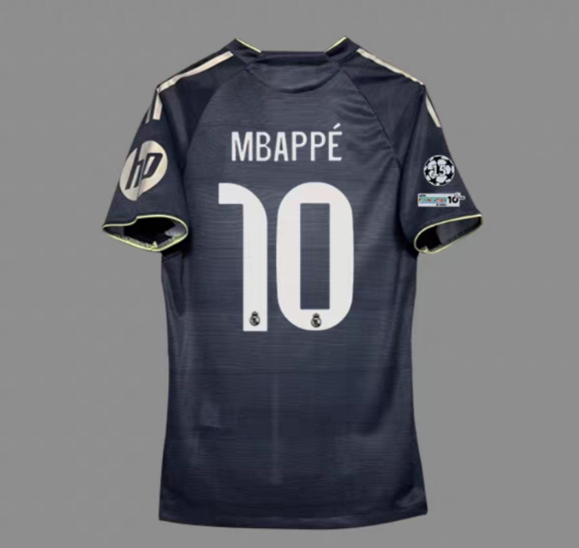 Футбольная форма Реал Мадрид 2526: домашняя и гостевая, а также вторая гостевая форма с номерами 10 Мбаппе, 7 Винисиус и 5 Беллингем.