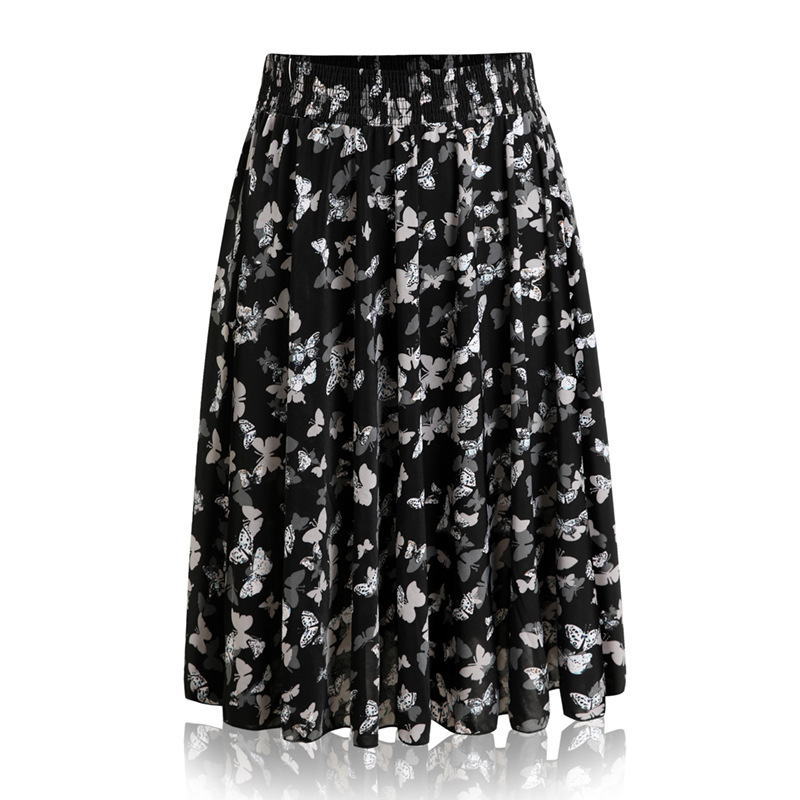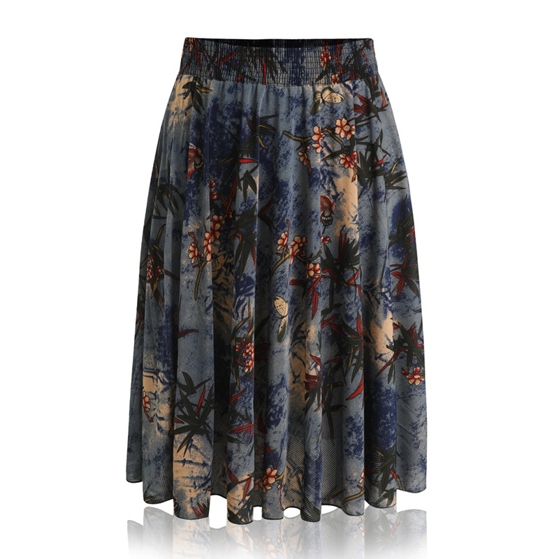 Летняя тонкая юбка для женщин среднего и старшего возраста, высокая талия, широкий подол, плиссированная, 2025 новая модель, длинная юбка из ледяного шелка