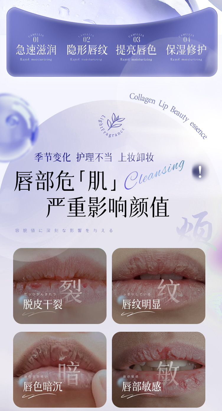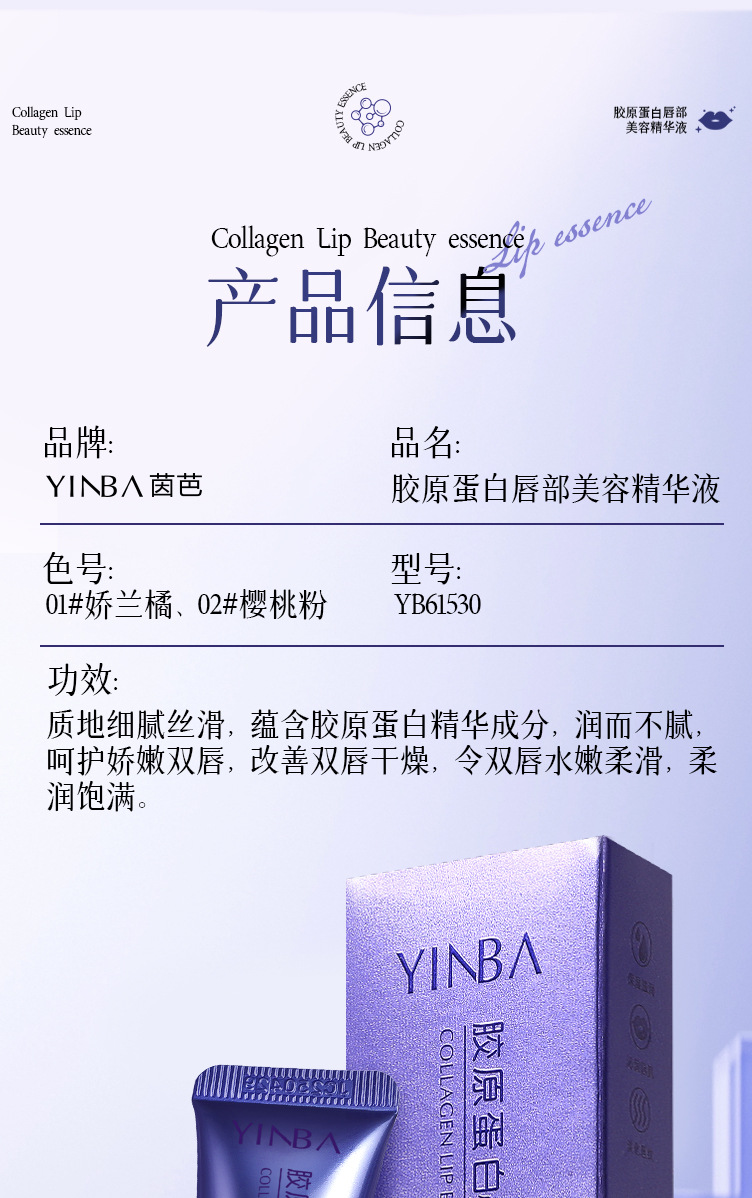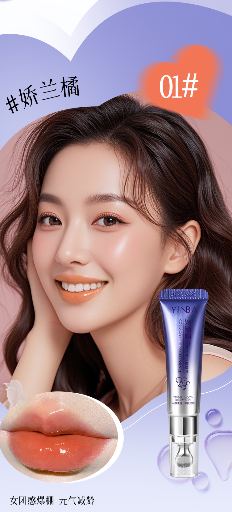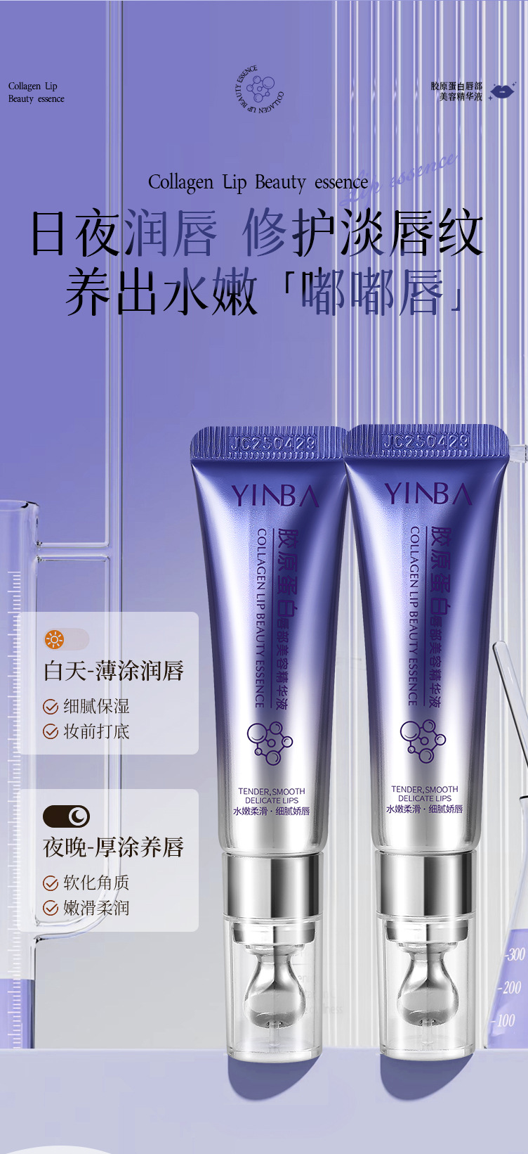 Yinba Collagen Lip Beauty Essence против морщин, выцветания линий губ, увлажнения, защиты от высыхания и обесцвечивания