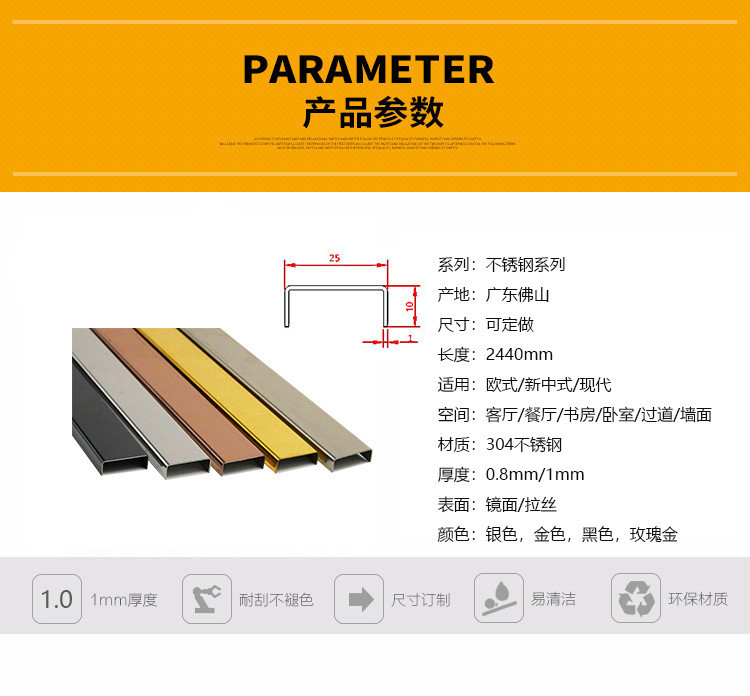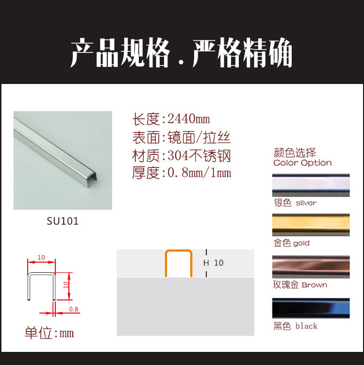 Нержавеющая сталь 304, U-образная закрывающая полоса для канавки, фоновая декоративная полоса для стены, обертка края потолка, металлическая защита кромок, угловая полоса, линия давления