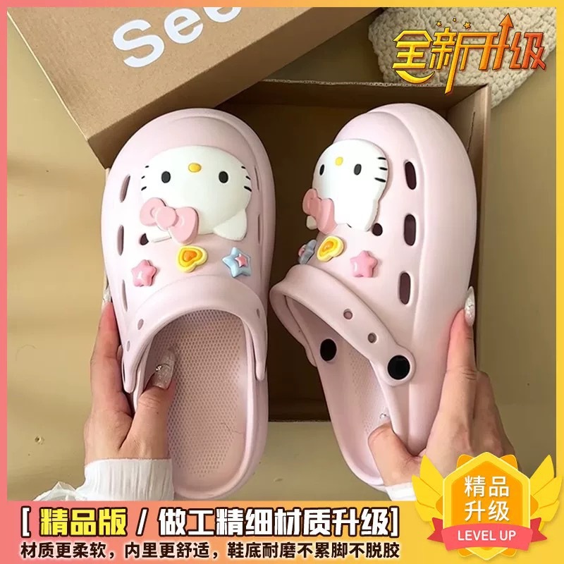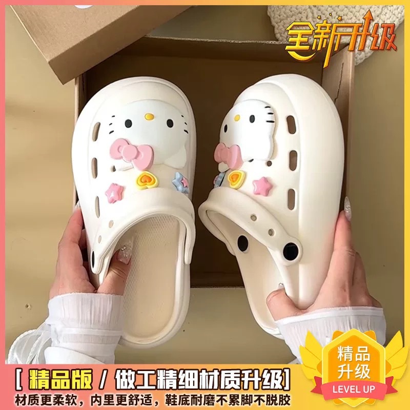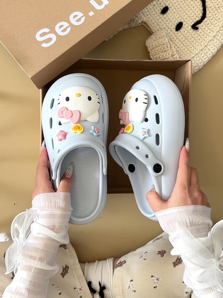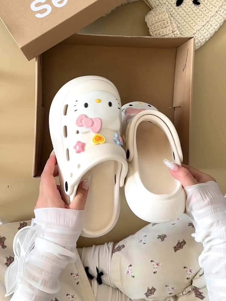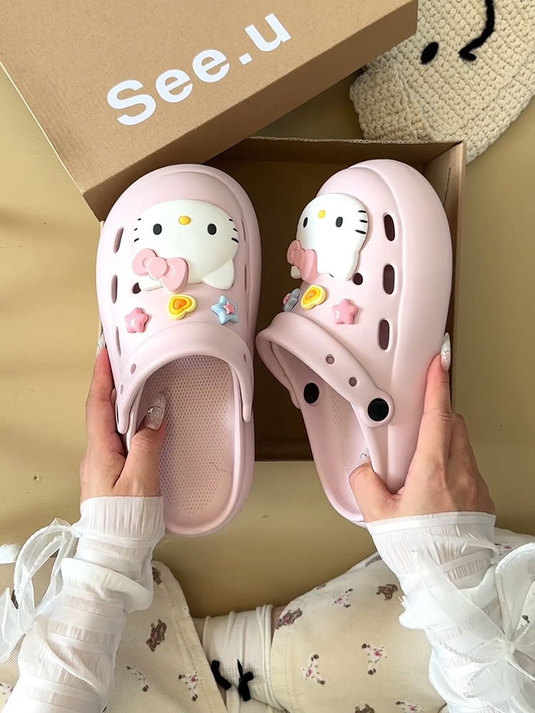Интернет-знаменитости, милые туфли с мультяшными кошачьими отверстиями для женщин, летняя верхняя одежда, нишевый дизайн, нескользящие пляжные сандалии на толстой подошве, новый стиль 25 лет