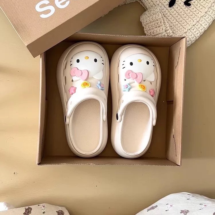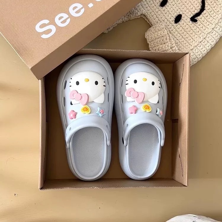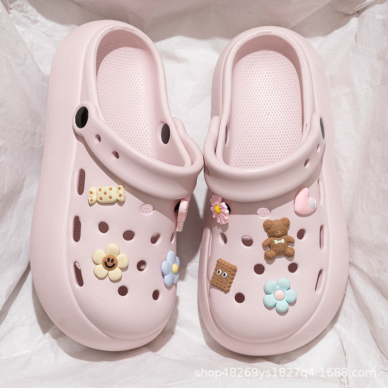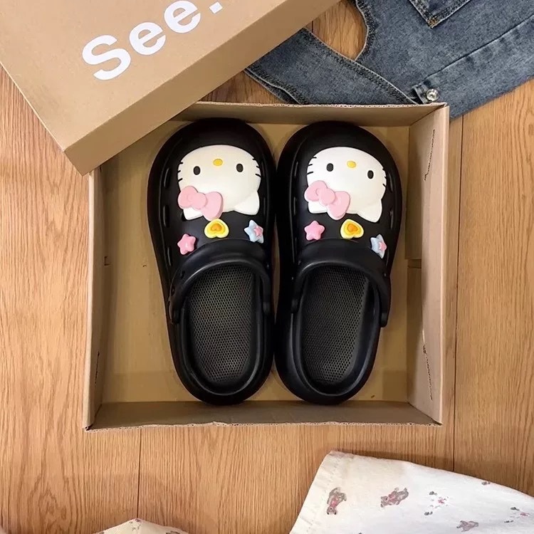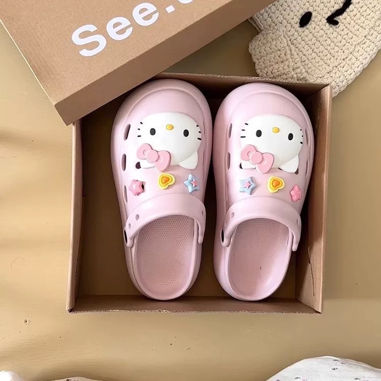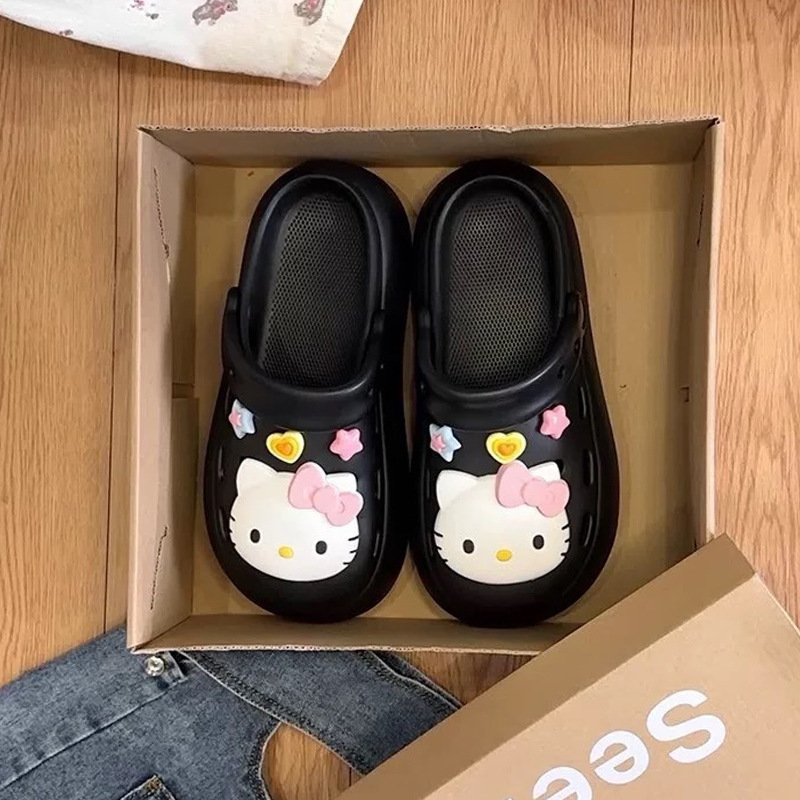Интернет-знаменитости, милые туфли с мультяшными кошачьими отверстиями для женщин, летняя верхняя одежда, нишевый дизайн, нескользящие пляжные сандалии на толстой подошве, новый стиль 25 лет