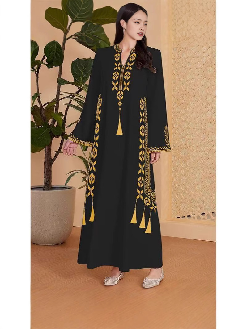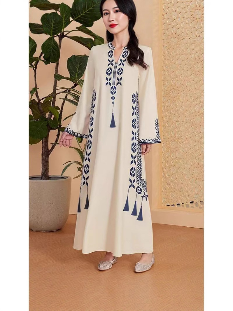 Новое популярное пляжное платье-халат из имитации шёлка с вышивкой Zhongding 2025 года, юбка для отдыха, трансграничная торговля на Amazon