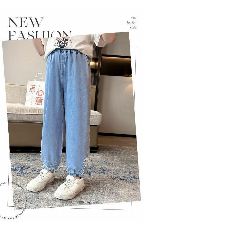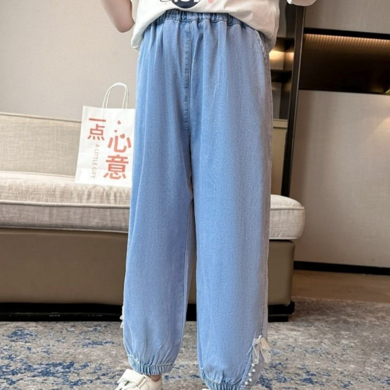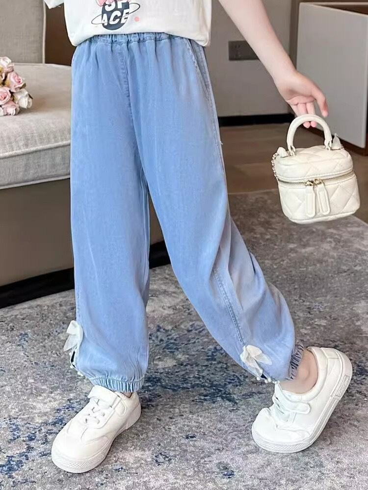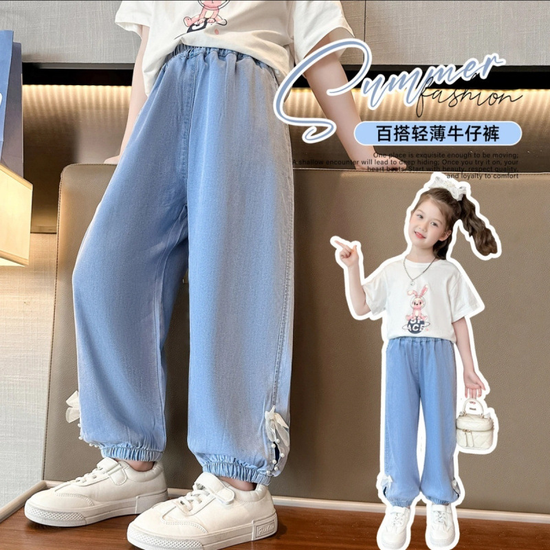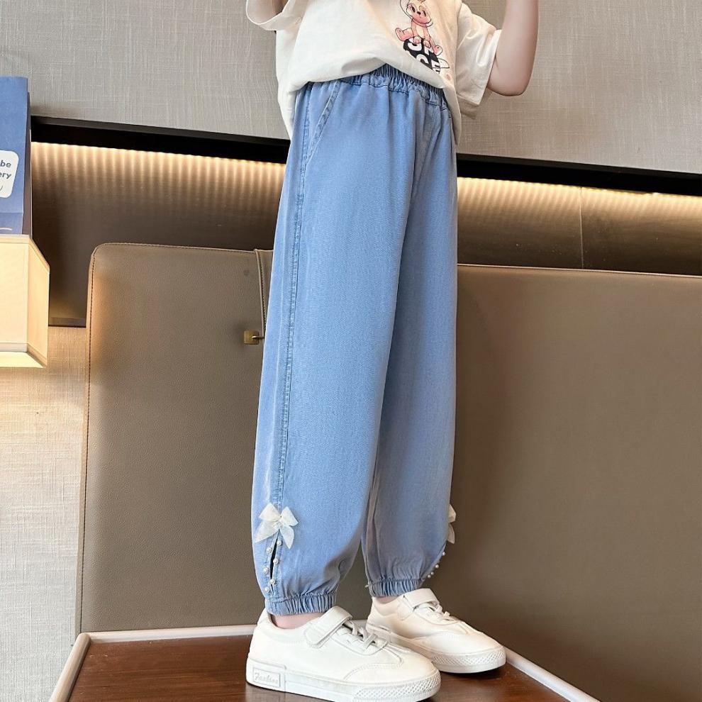 Брюки для девочек, штаны с защитой от комаров, летние тонкие, новинка 2025 года, детский летний стиль для детей старшего возраста, джинсовая детская летняя одежда из тенселя