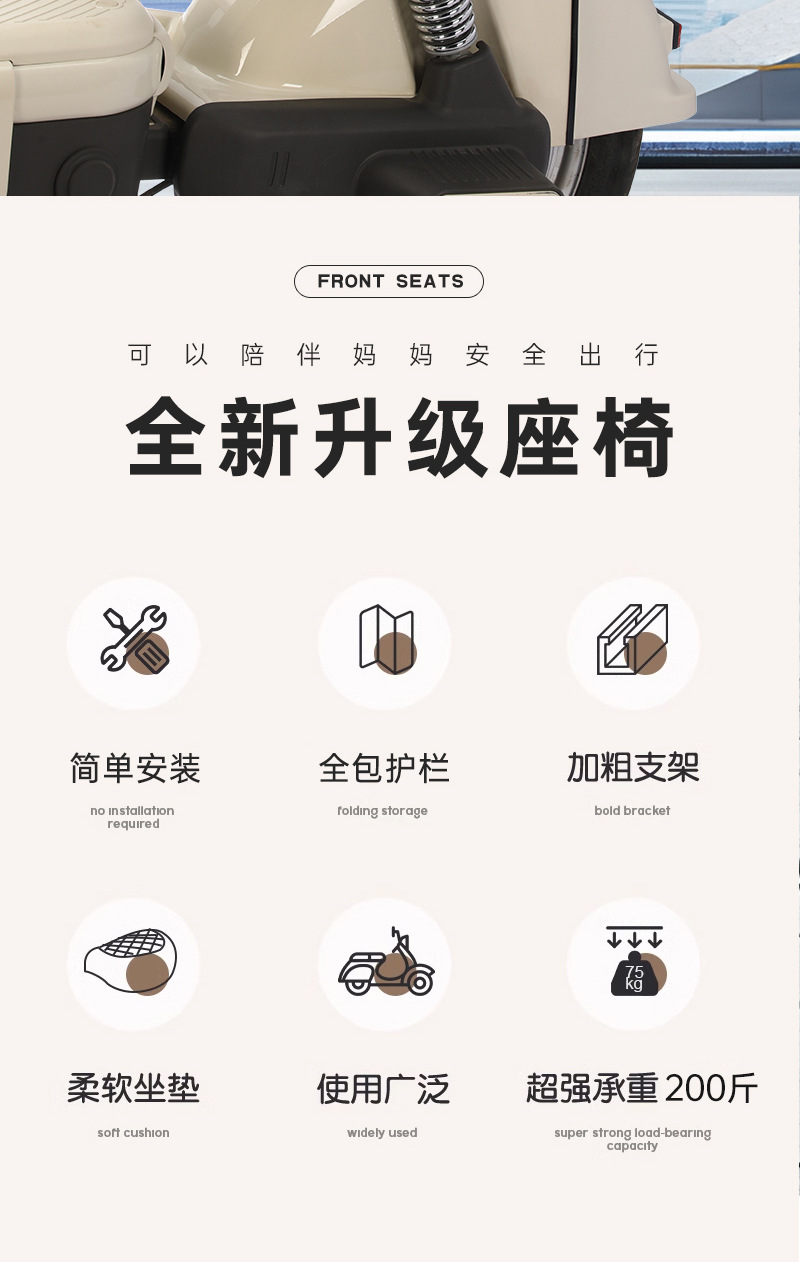 Электросамокат с детским сиденьем, безопасный, с задним расположением аккумулятора, велосипед для детей, мотоцикл для малышей, стабильная амортизация.