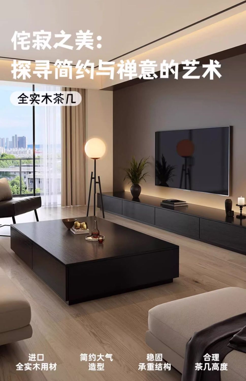Журнальный столик в стиле ваби-саби из массива дерева для гостиной, новинка 2025 года, светлый люкс, высококлассный журнальный столик для маленькой квартиры, комбинация с ТВ-тумбой