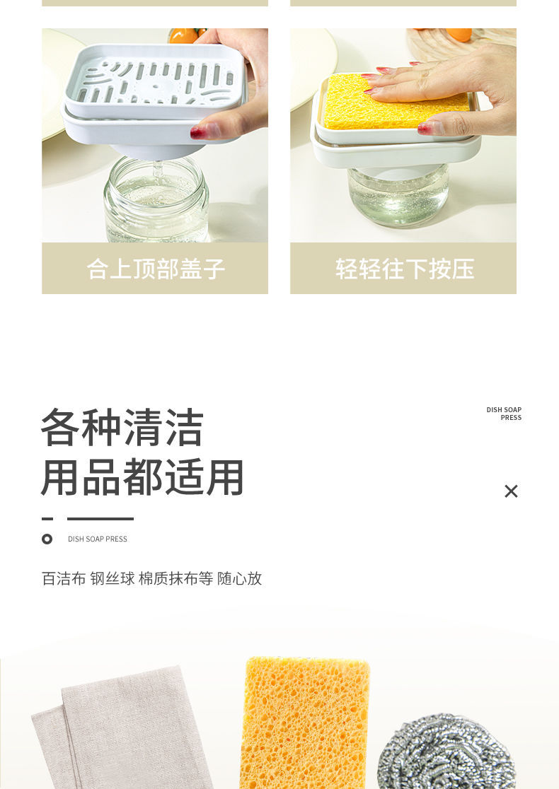 [Круглый] Дозатор жидкости для мытья посуды, белый; Диспенсер для мыла круглый + губка для цветов 3 шт. белый; Квадратный дозатор для мыла + губка из древесной массы, 5 шт., белый; [Квадрат] Дозатор жидкости для мытья посуды белый