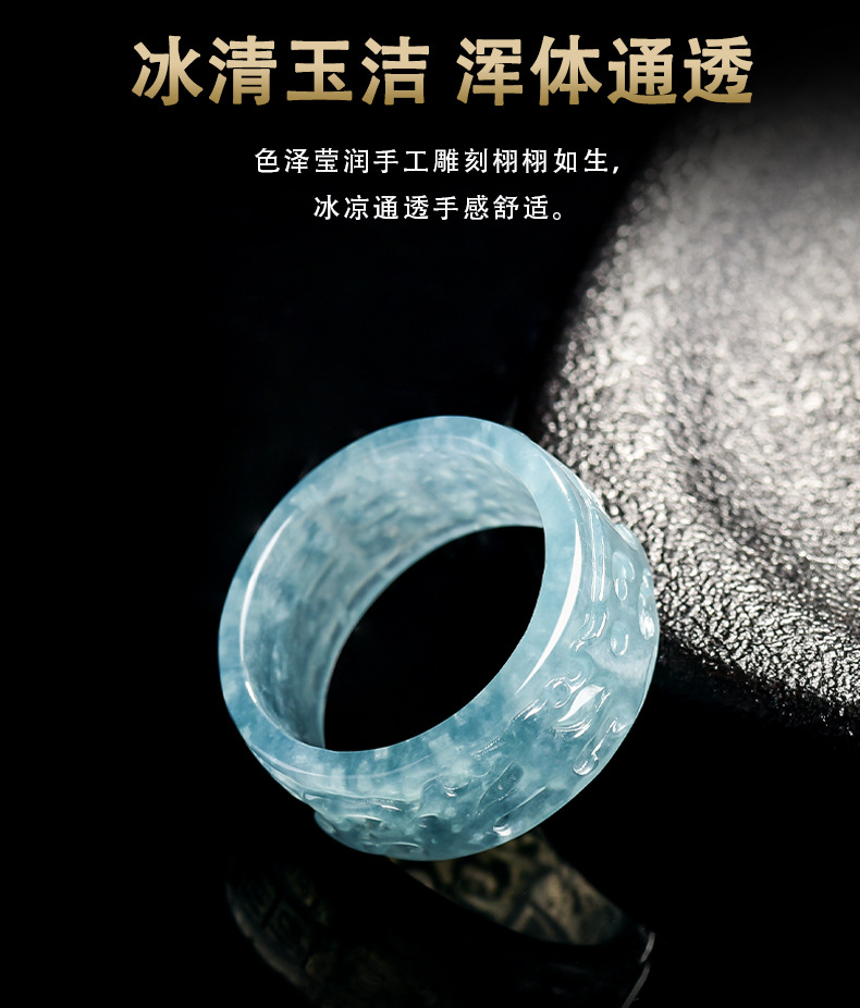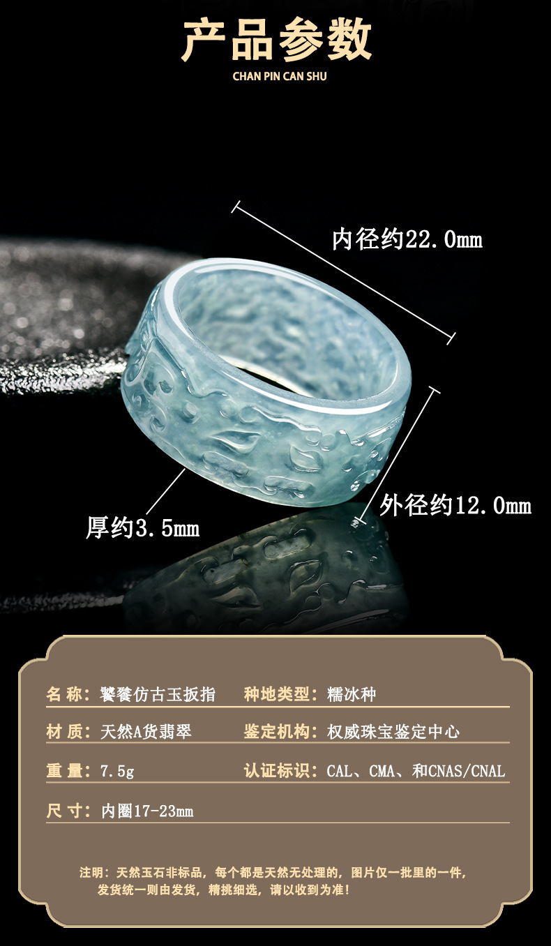 Натуральный жадеит класса А, синяя водная зверь, кольцо на палец в античном стиле, ледяной нефрит, пара нефритовых колец, мужское стильное кольцо