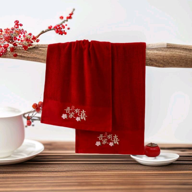 Свадебное красное полотенце, хлопковое свадебное праздничное утолщенное бордовое полотенце, сувенирное полотенце для лица, свадебное праздничное полотенце
