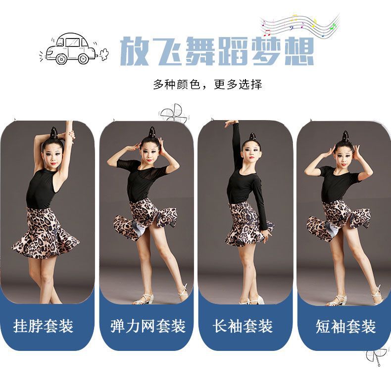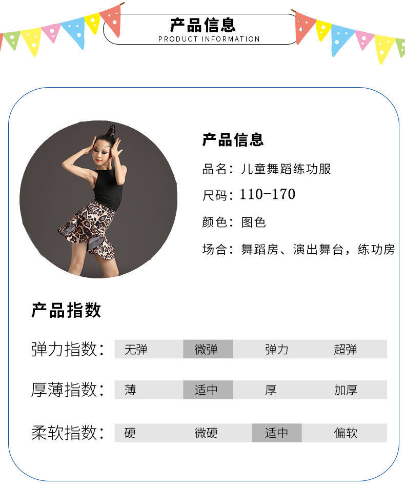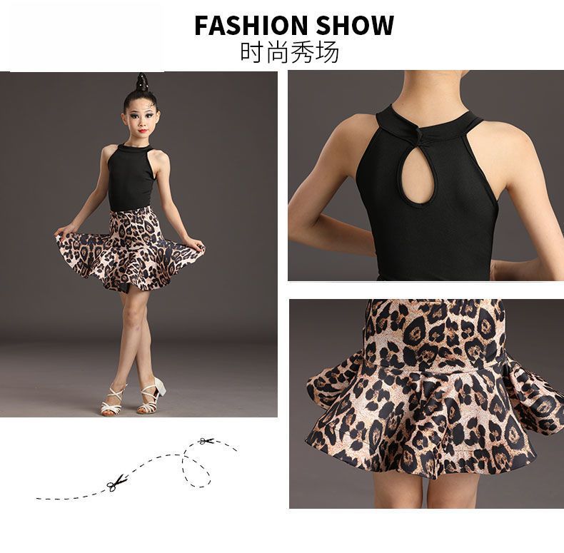 Детская юбка для латинских танцев, разделенная тренировочная одежда для девочек, одежда для выступлений, детская тренировочная одежда с леопардовым принтом для латинских танцев, весна