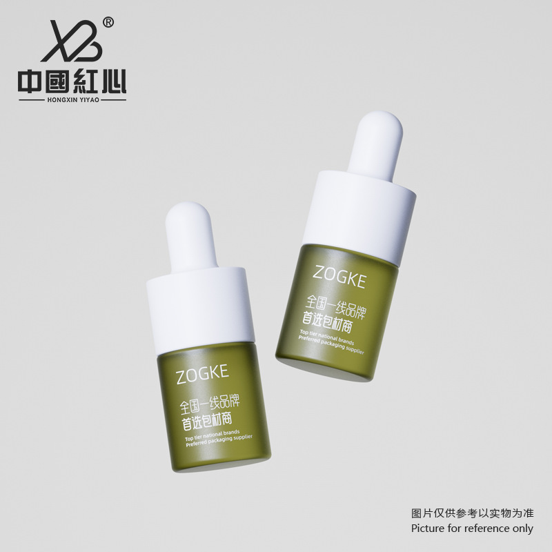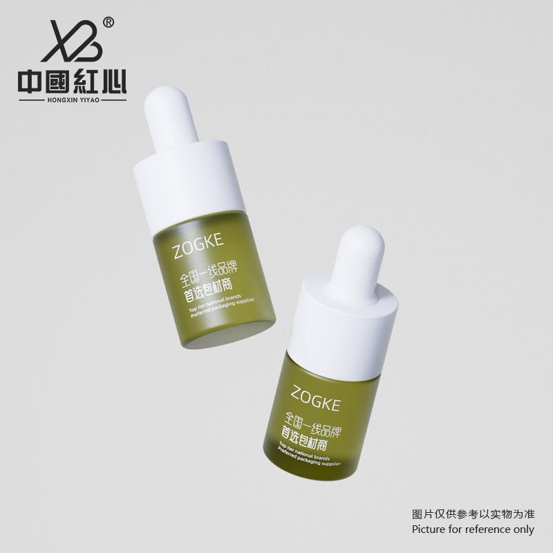 Зеленый матовый флакон с завинчивающейся крышкой объемом 5 мл с серо-белым кольцом + серо-белым пластиковым наконечником