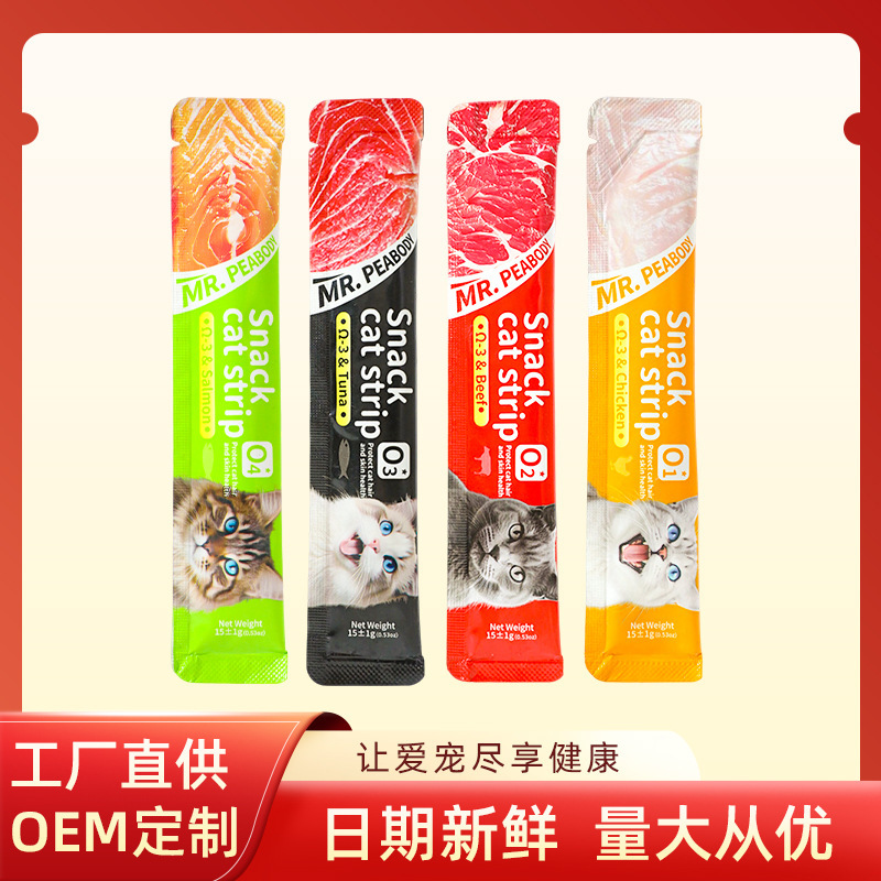 Трансграничная английская версия Cat Strip Peabody Cat Snacks для откорма волос и щек, питательный влажный корм для кошек, прямые поставки с фабрики и оптовая торговля.