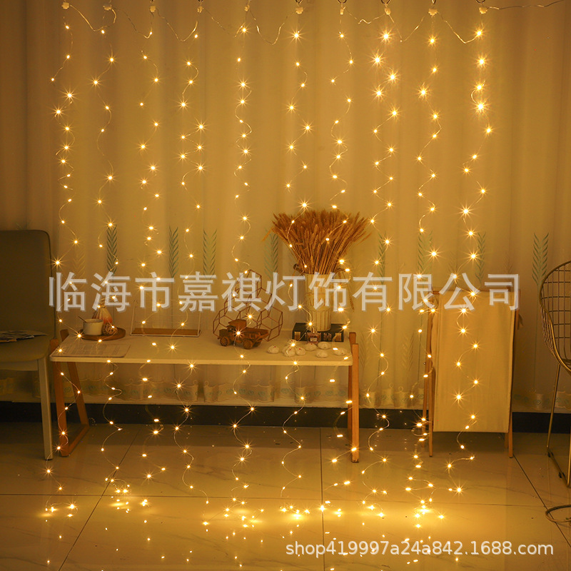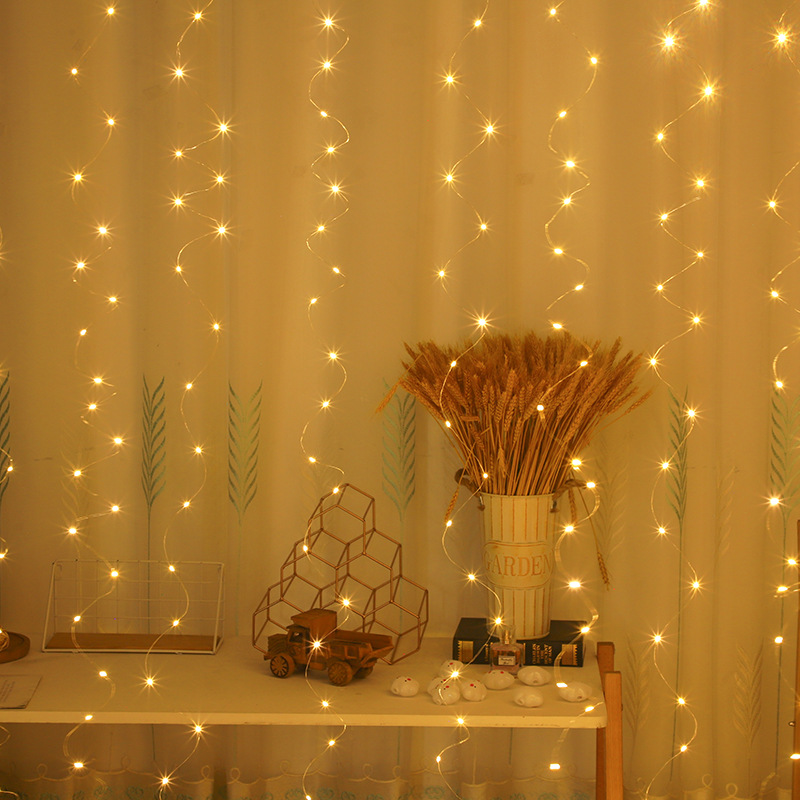 Оптовая продажа: Новогодние гирлянды-шторы 3х3 USB с пультом ДУ, медная проволока, для создания атмосферы в комнате, праздничное украшение