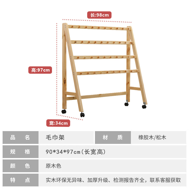 Вешалка для полотенец из цельного дерева Pinus sylvestris для детского сада, детская деревянная вешалка для банных полотенец, съемная напольная вешалка для полотенец