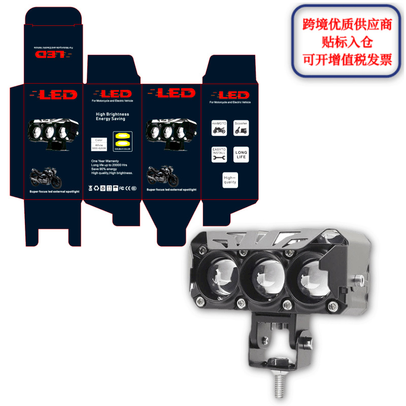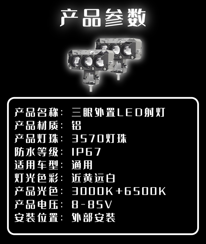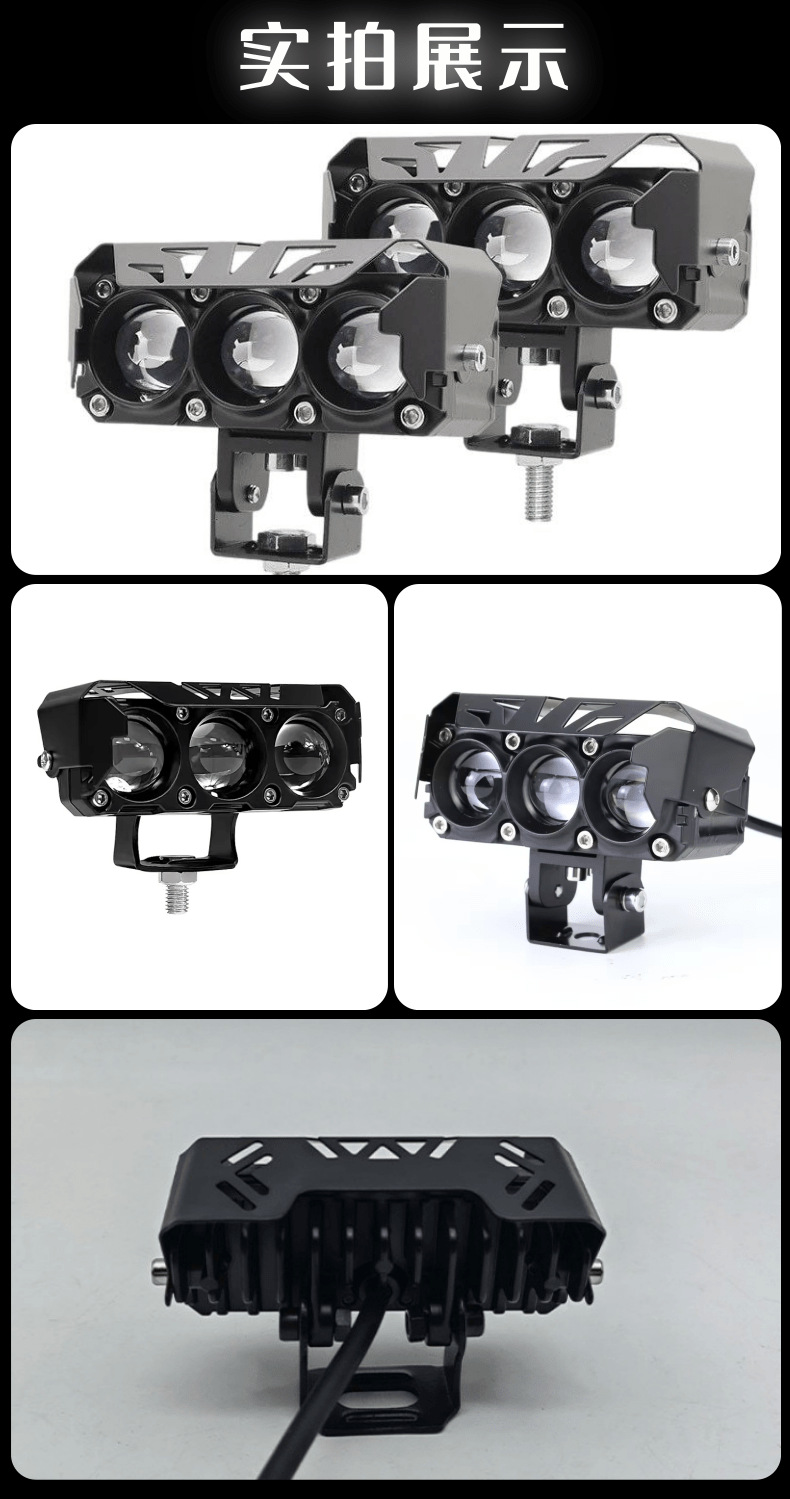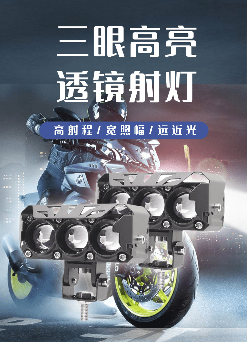 Трехглазый светодиодный прожектор для мотоциклов с тремя цветами света, дальним и ближним светом, интегрированная модификация фары для электромотоциклов.