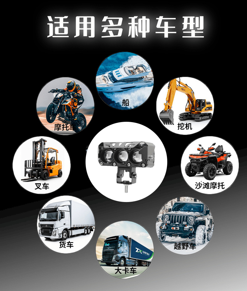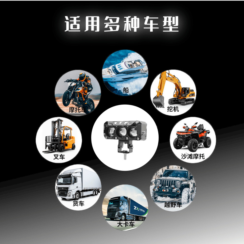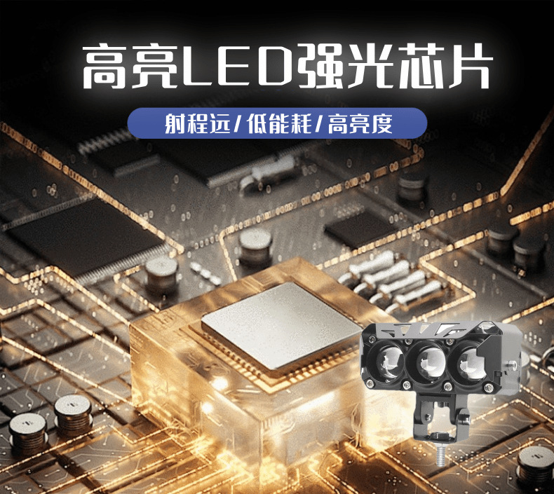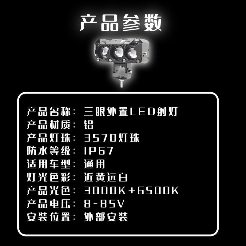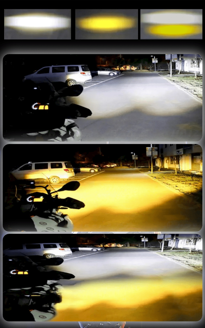Трехглазый светодиодный прожектор для мотоциклов с тремя цветами света, дальним и ближним светом, интегрированная модификация фары для электромотоциклов.