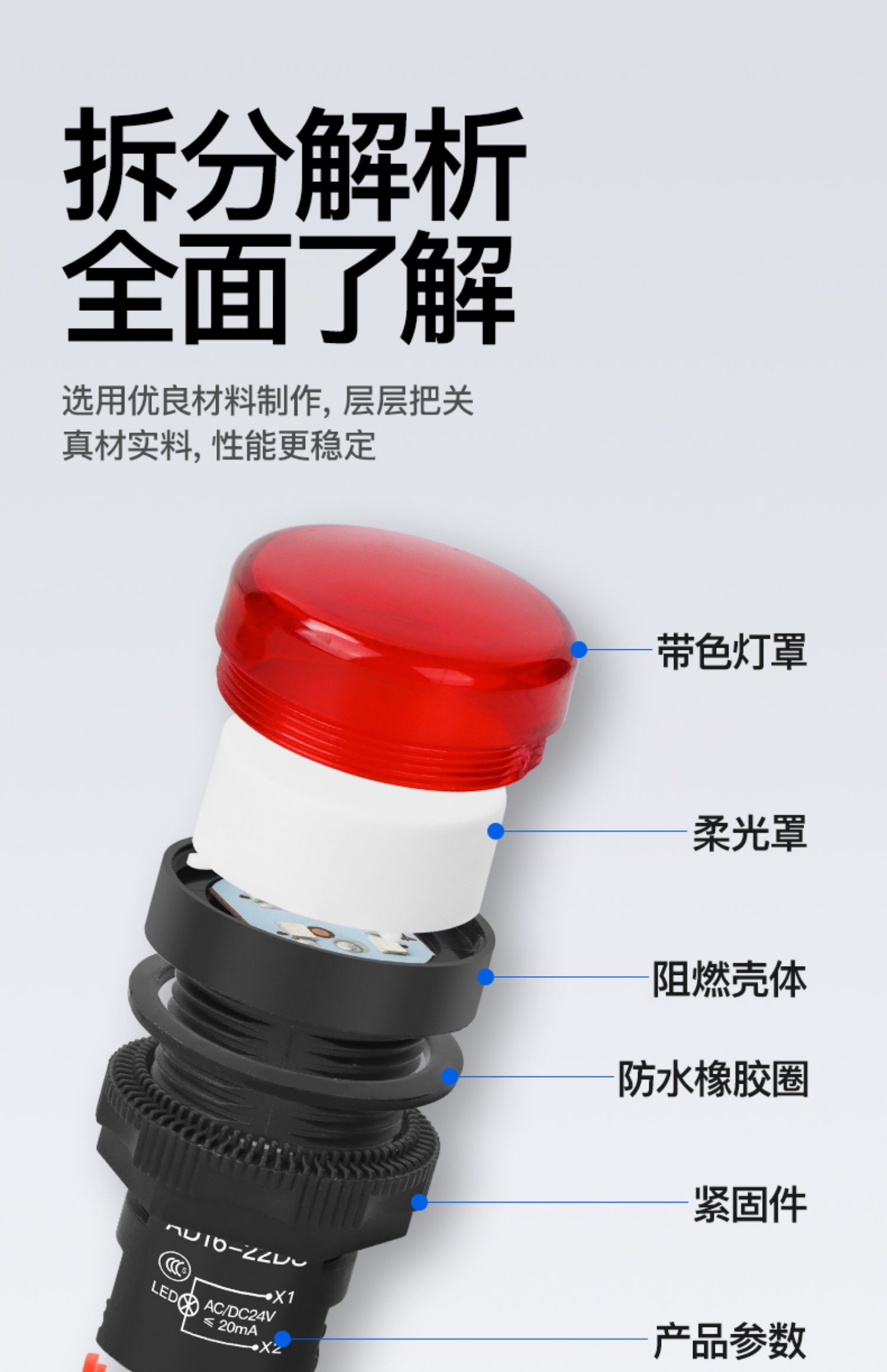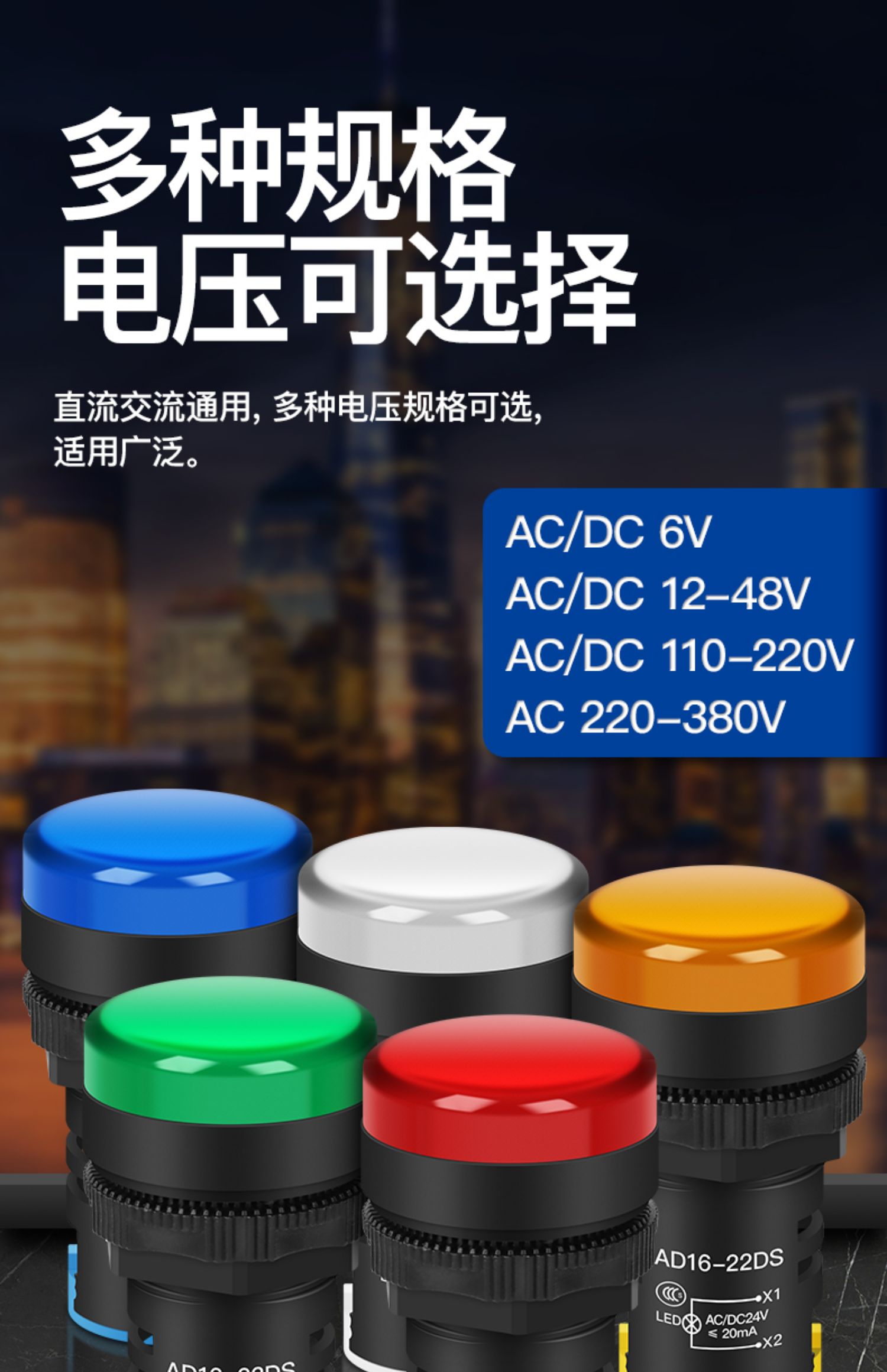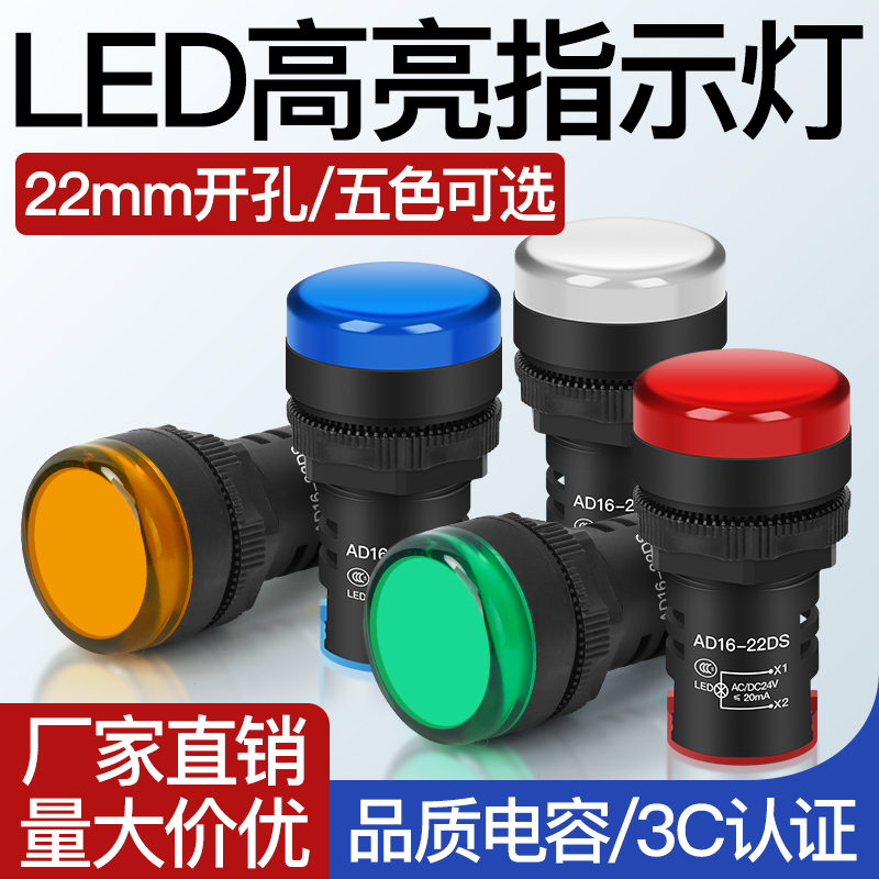 Светодиодный индикатор питания AD16-22D/S рабочий сигнальный светильник 22MM12v24v380v красный зеленый желтый синий белый
