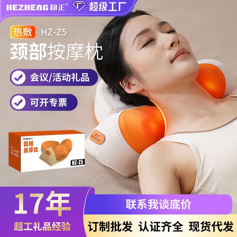 Массажная подушка Hezheng с функцией подогрева и автоматическим разминанием для шеи, перезаряжаемая, для использования во время зарядки, подарок на ежегодное собрание.