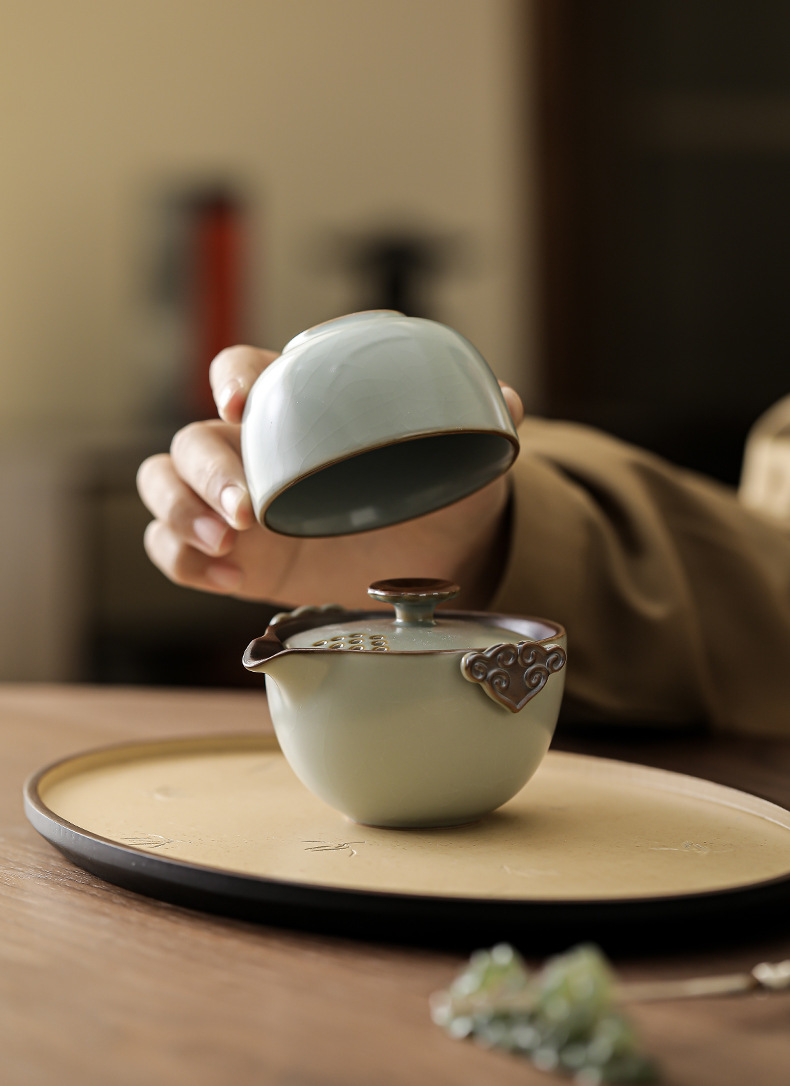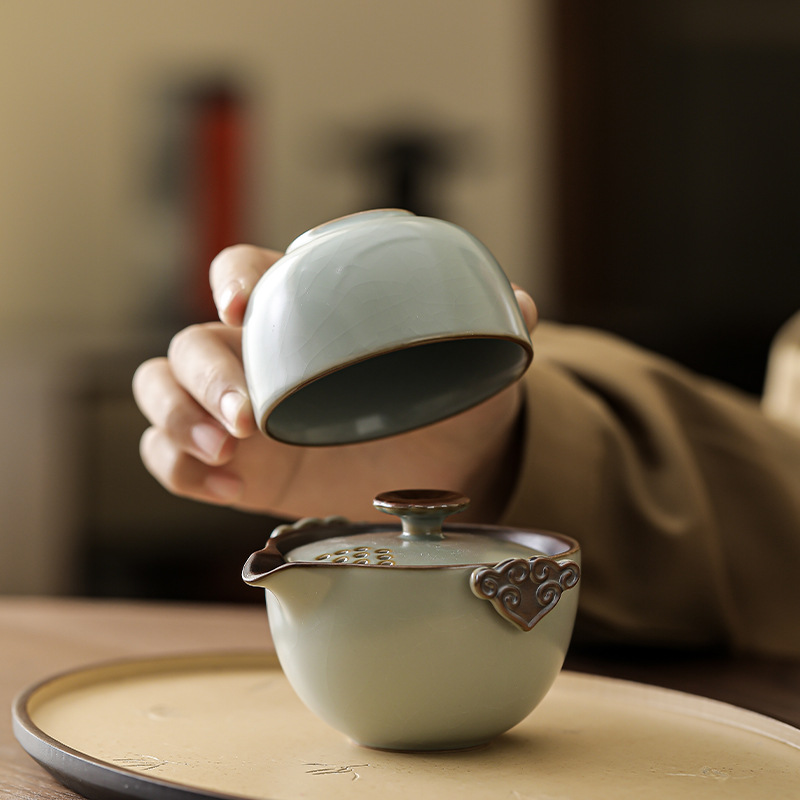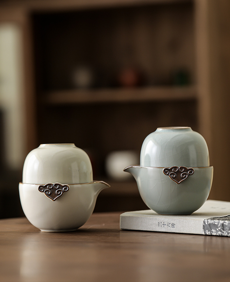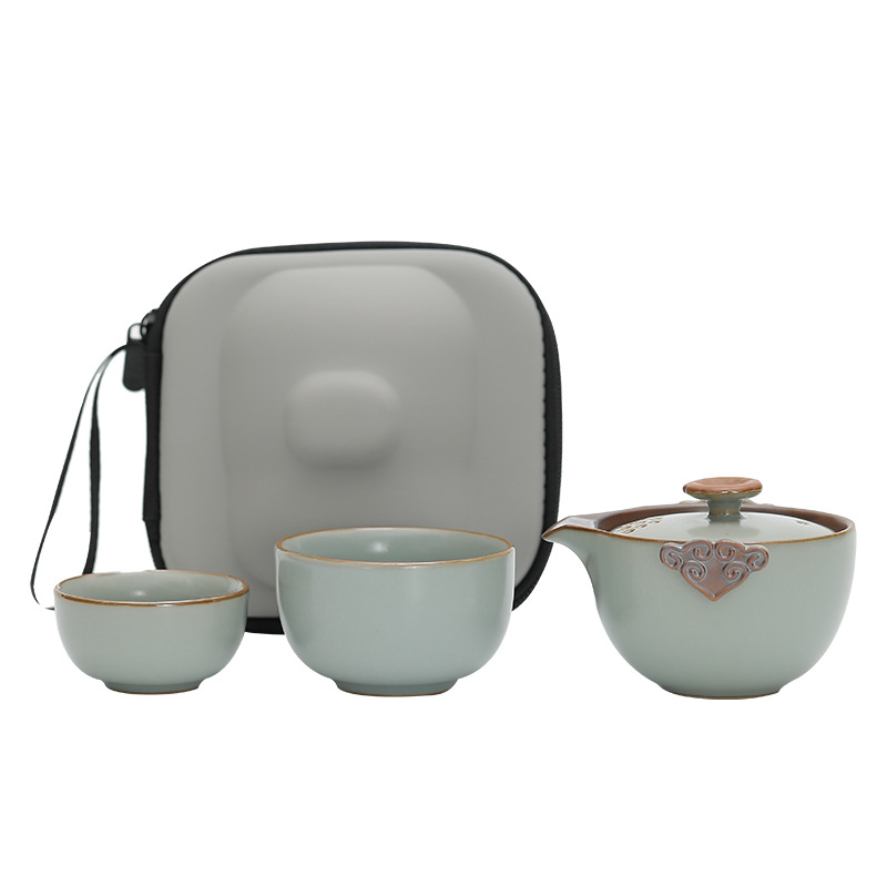 Ru Kiln Travel Чайный набор Портативный один горшок Две чашки Быстрая чашка Открытый Кемпинг Керамический Бизнес Сувенир Подарок