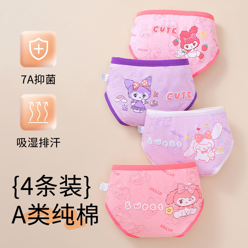 Детское нижнее белье класса А из чистого хлопка для девочек, антибактериальные дышащие студенческие трусы со средней талией с героями мультфильмов, шорты для девочек, нижнее белье