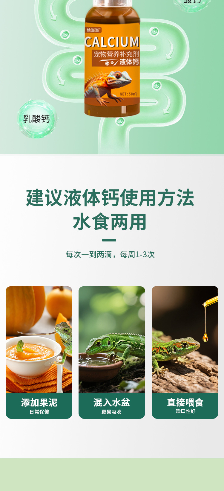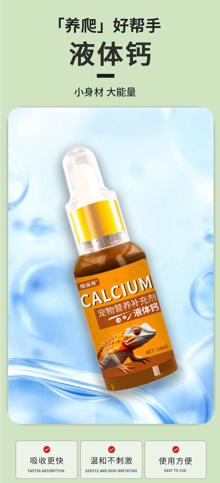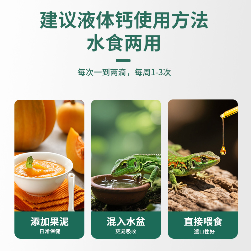 Жидкость с кальцием для черепах, ящериц, змей, рогатых лягушек и рептилий; легко усваиваемая питательная жидкая добавка.