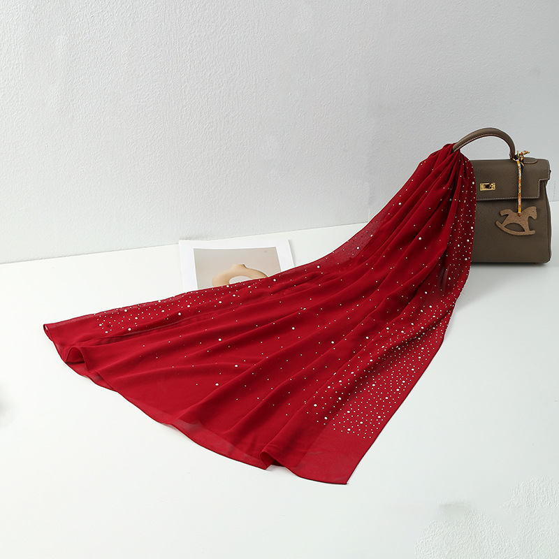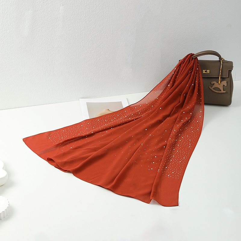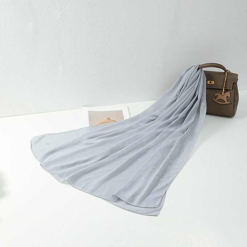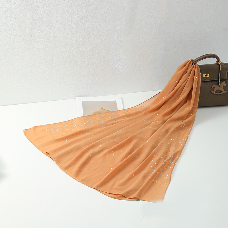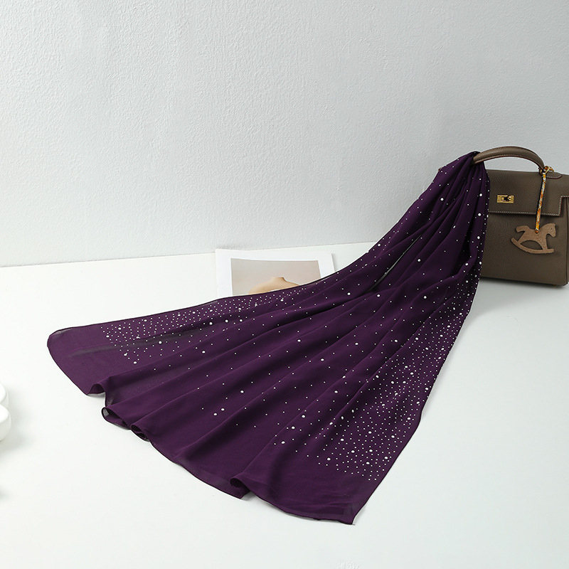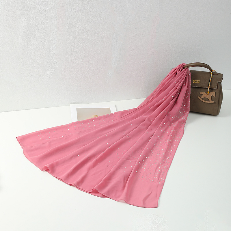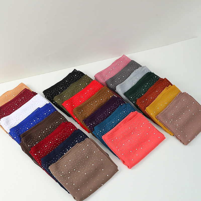 Новый малайзийский однотонный фарфоровый длинный шарф с алмазным узором, оптом, тонкий, дышащий, модный хиджаб из жемчужного шифона