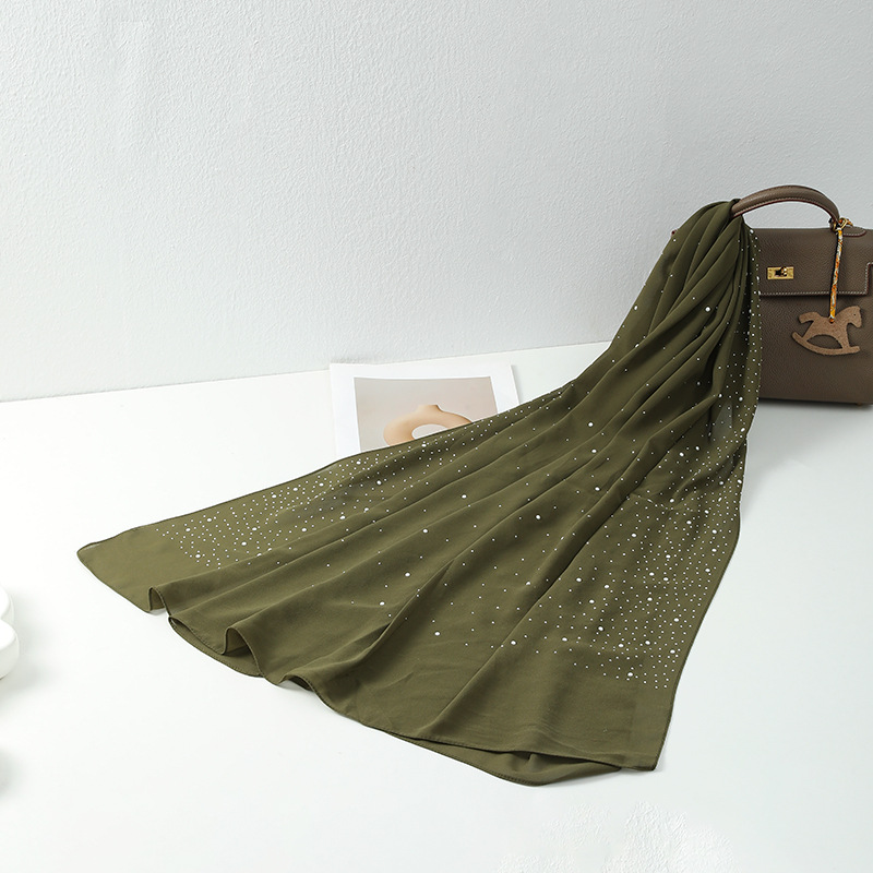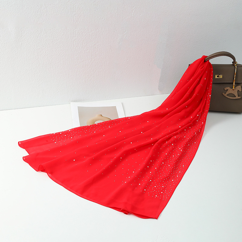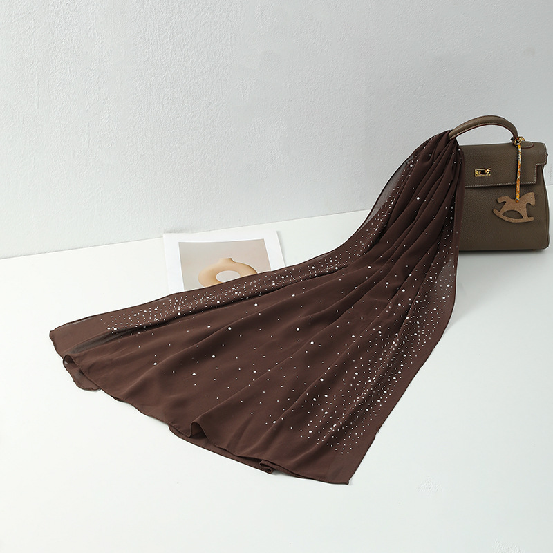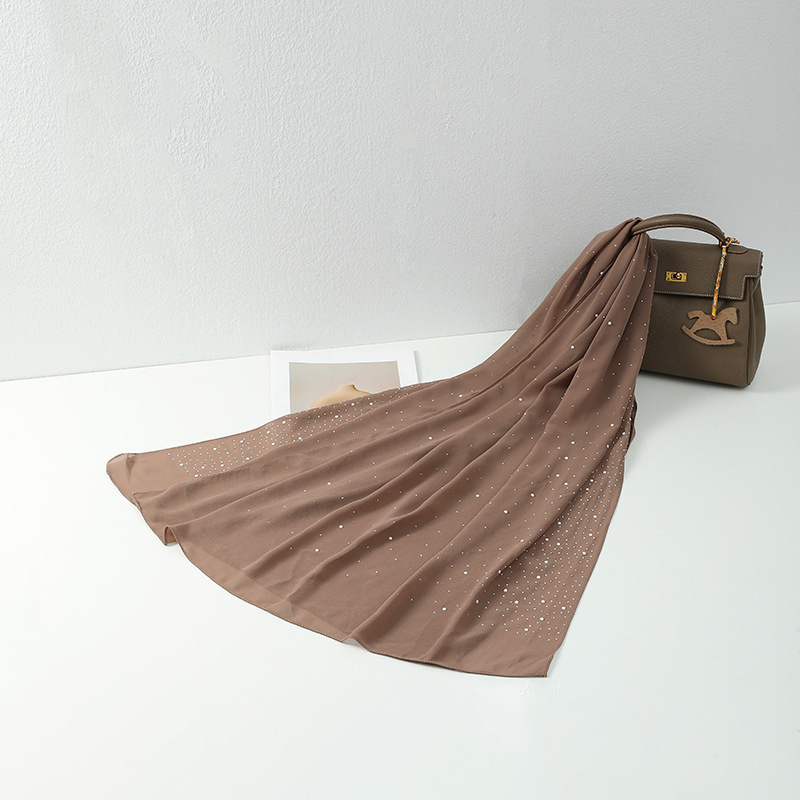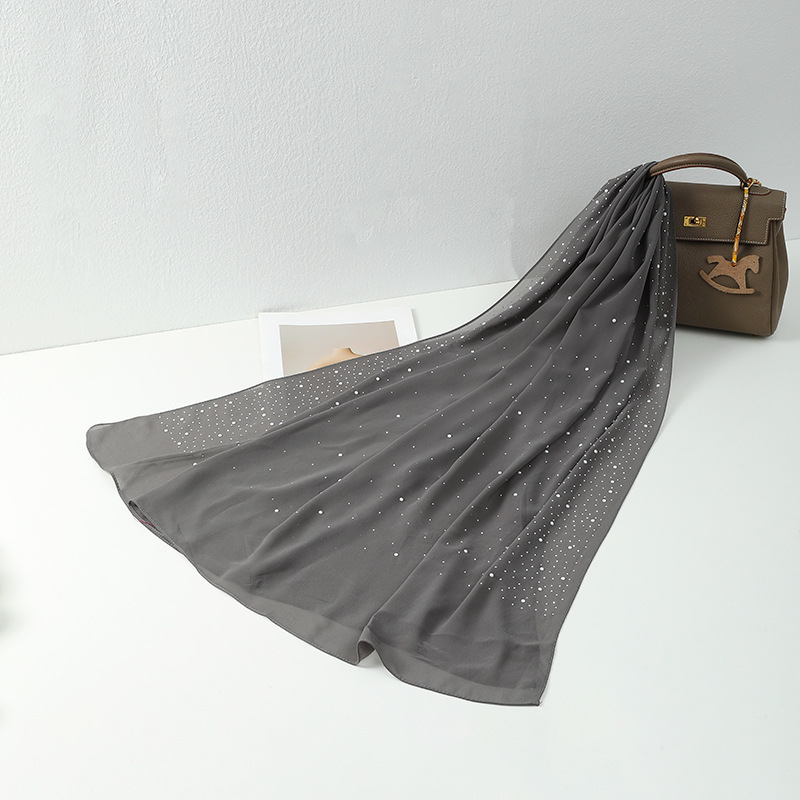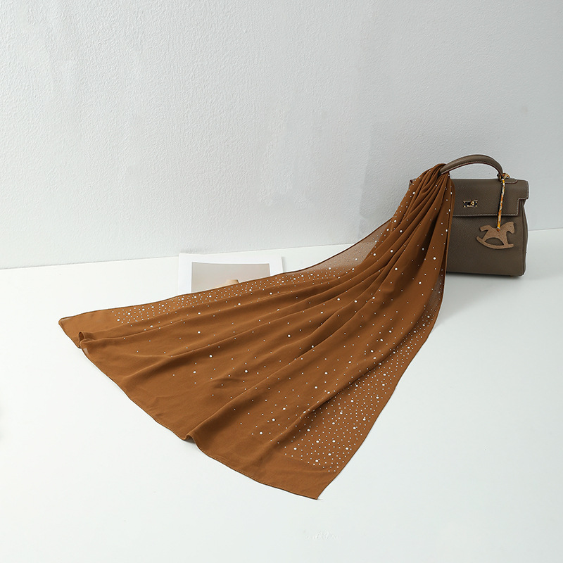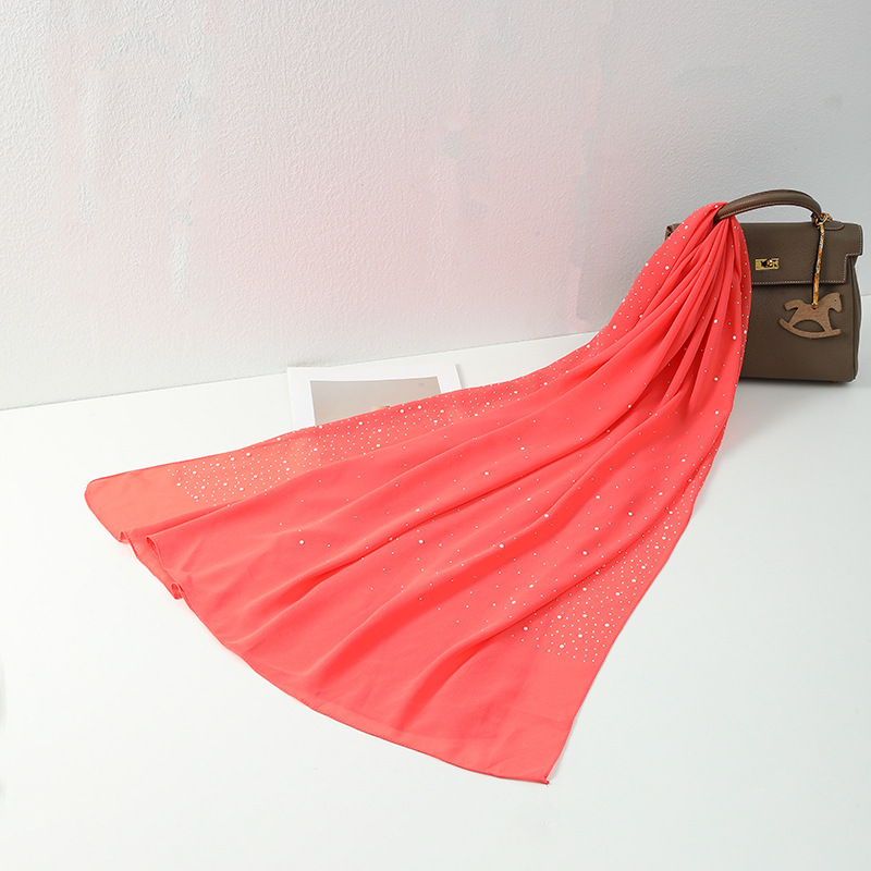 Новый малайзийский однотонный фарфоровый длинный шарф с алмазным узором, оптом, тонкий, дышащий, модный хиджаб из жемчужного шифона