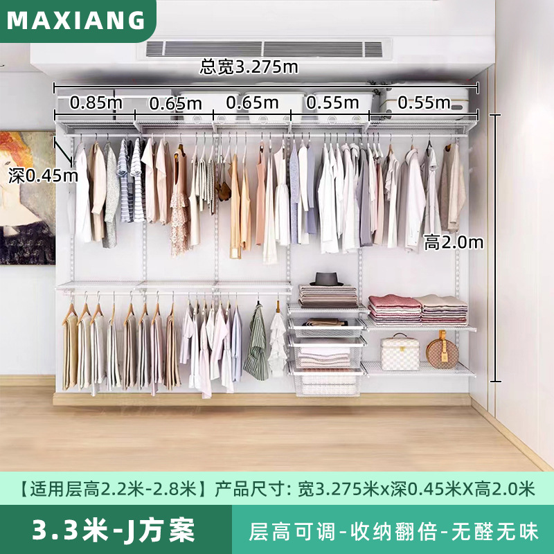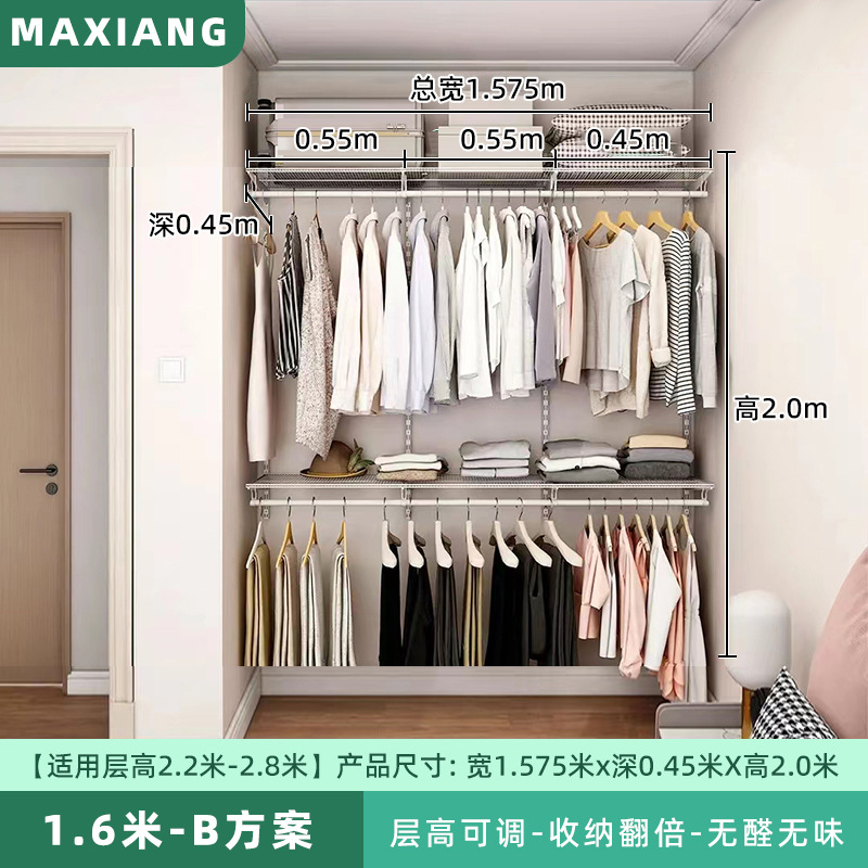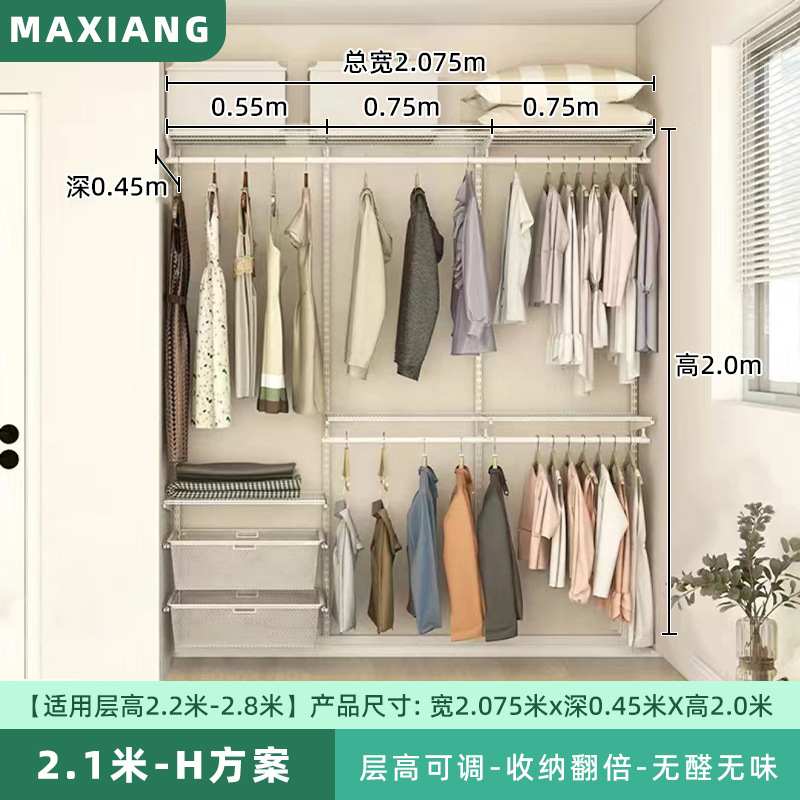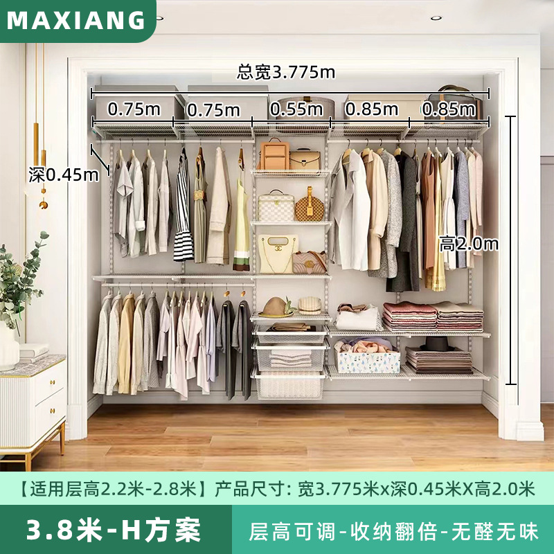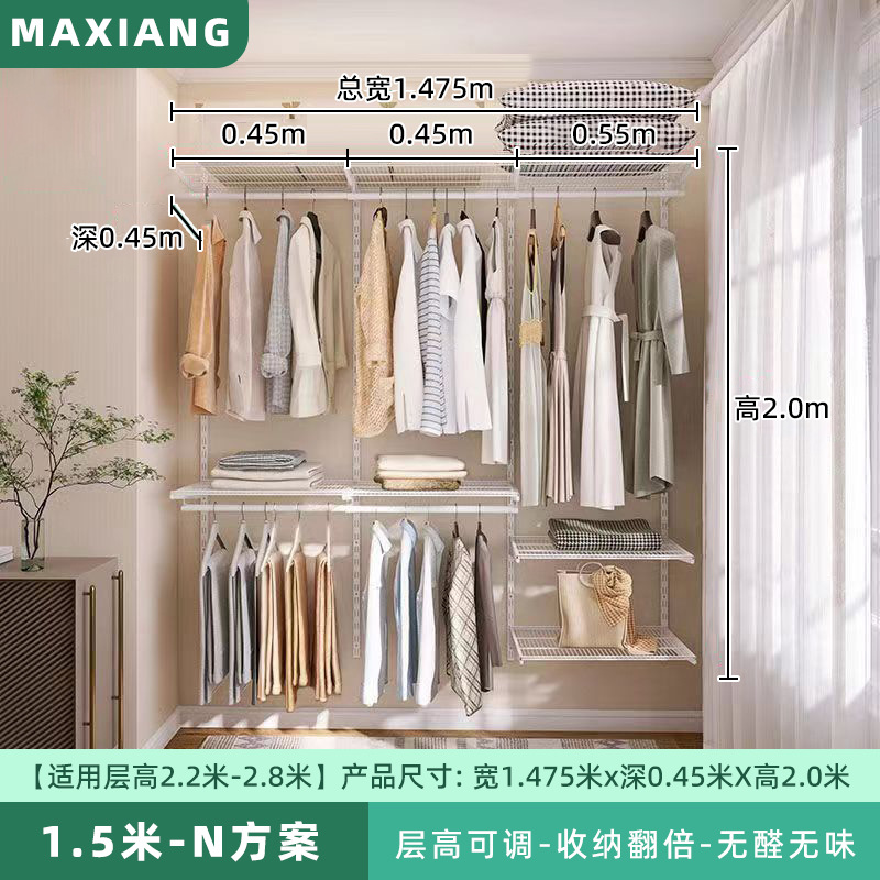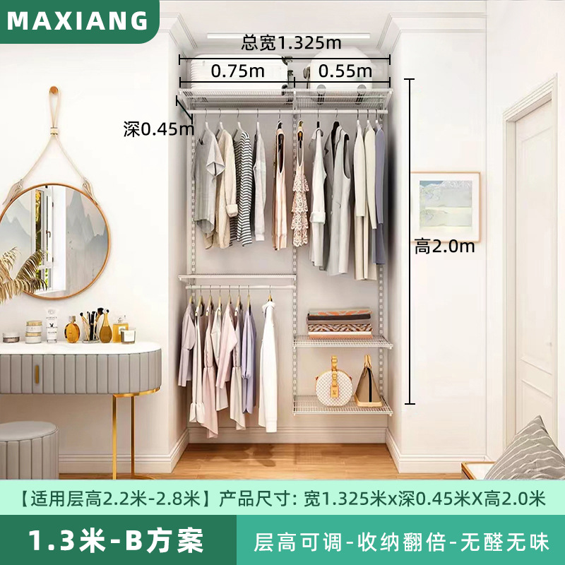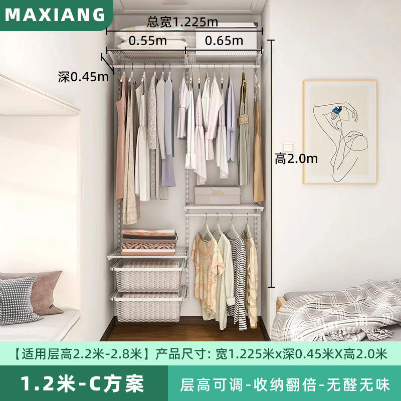 Металлический шкаф-гардероб для дома, спальни, аренды, открытый, модульный, из углеродистой стали, для самостоятельной сборки