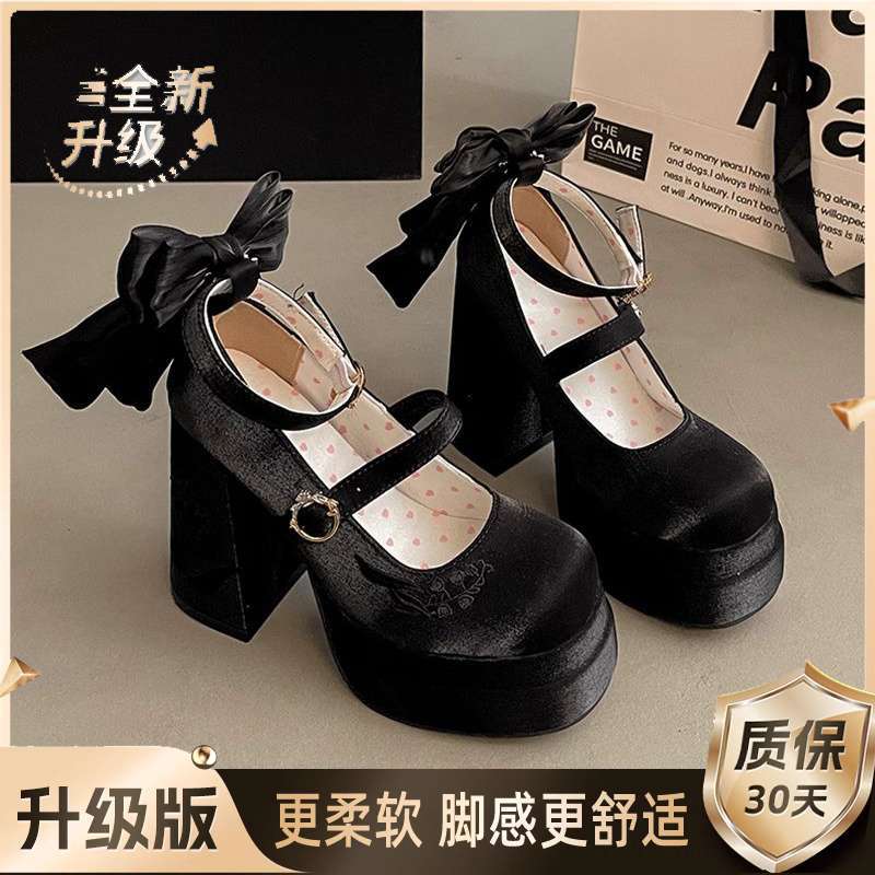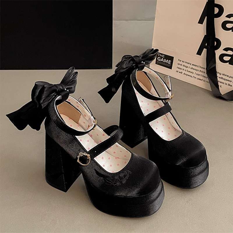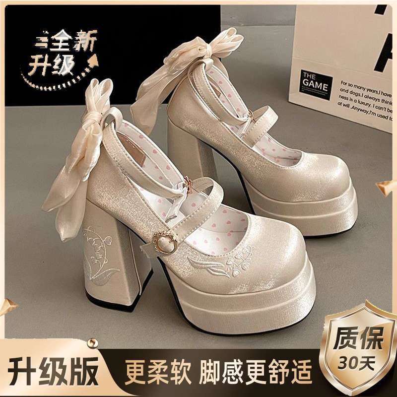 Водонепроницаемые элегантные туфли Мэри Джейн с атласным бантом, новая нишевая модель 2025 года, вышивка ландышей, высокие каблуки