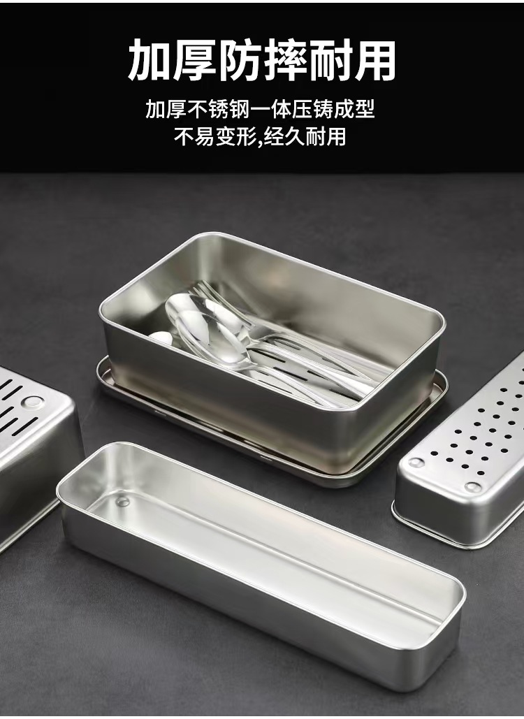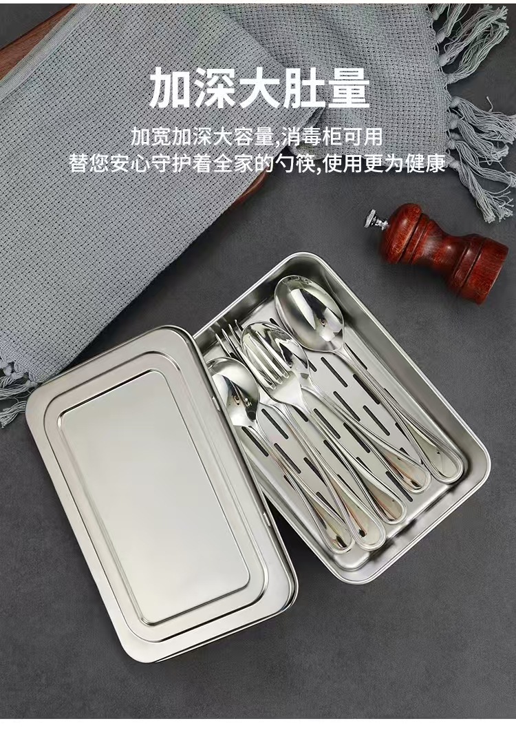 Прямые поставки с завода: коробка для хранения столовых приборов из нержавеющей стали 304 с крышкой, портативная коробка для вилок, ложек и палочек для еды.